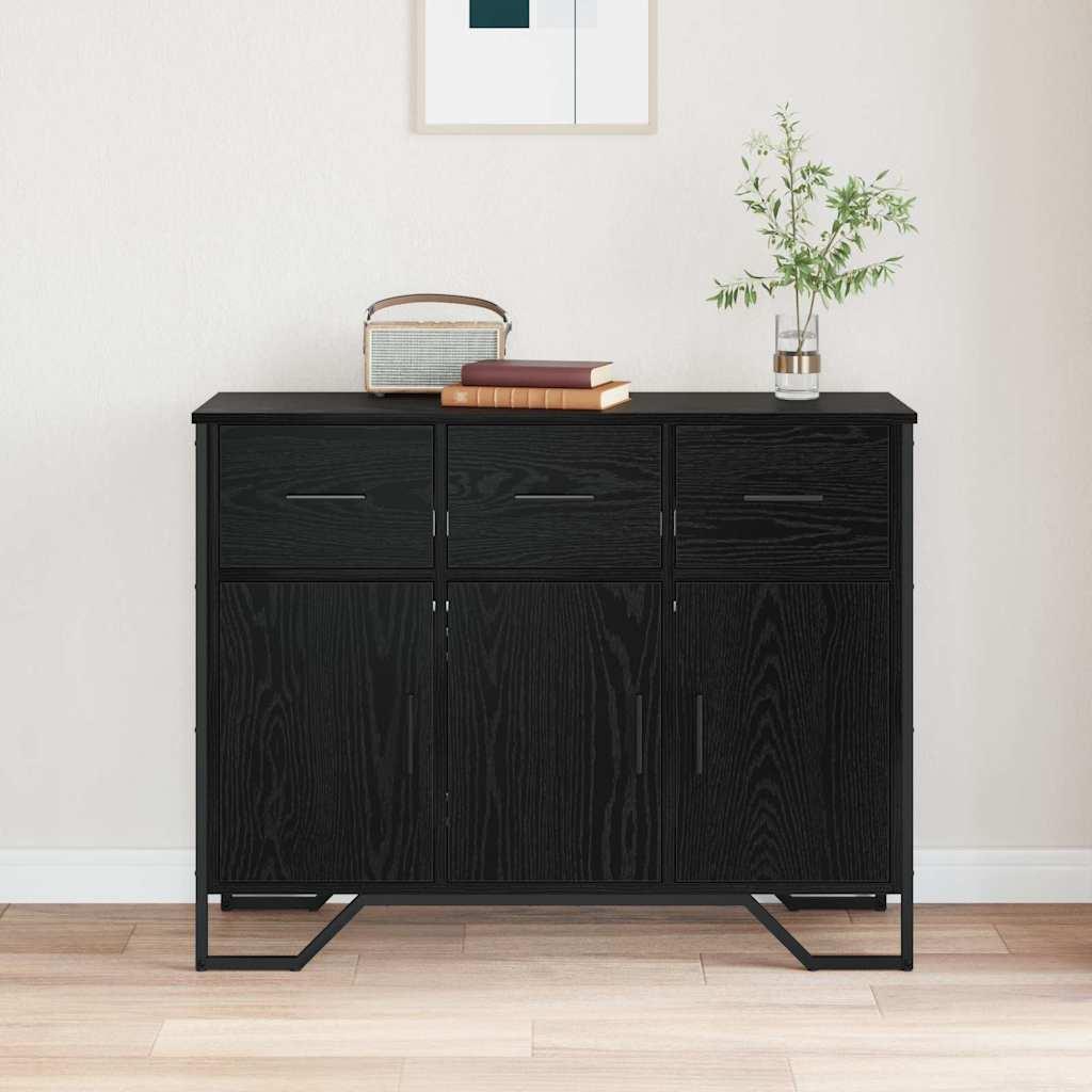 Dressoir Zwart Eiken 97 x 32,5 x 74,5 cm Bewerkt hout