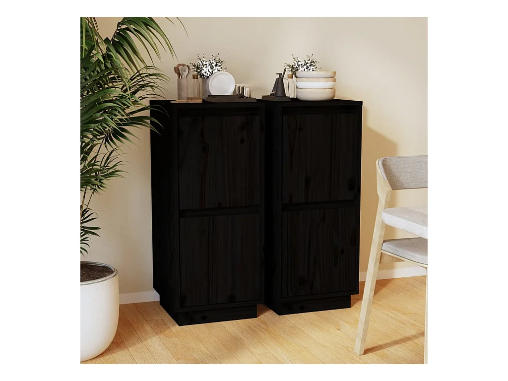 Dressoirs 2 st 31,5x34x75 cm massief grenenhout zwart NL654059