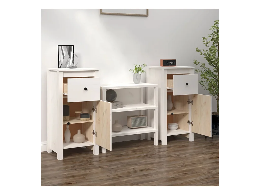 Dressoirs 2 st 40x35x80 cm massief grenenhout wit NL770319
