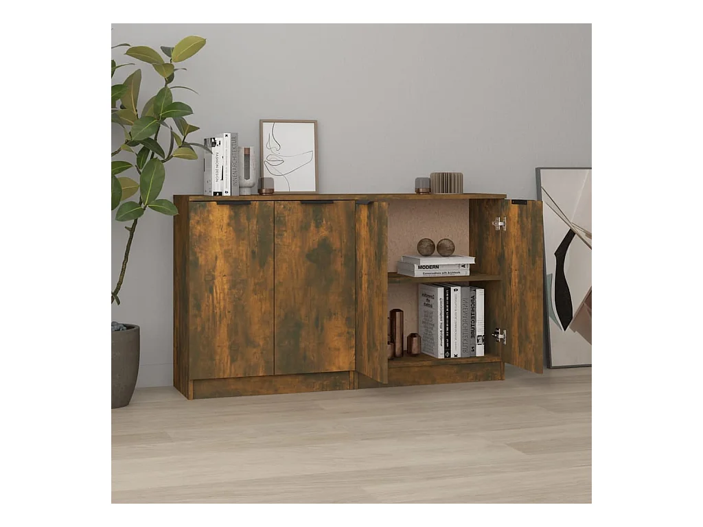 Dressoirs 2 st 60x30x70 cm bewerkt hout gerookt eikenkleurig