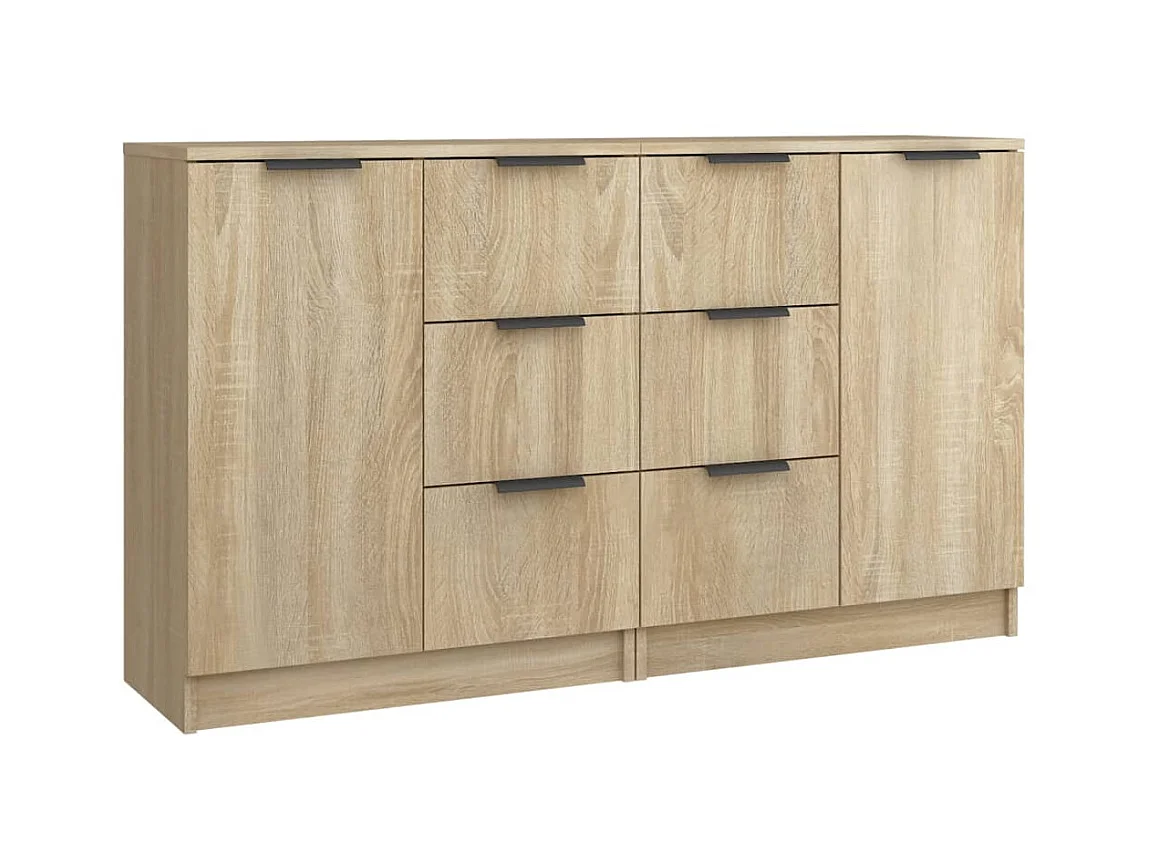 Dressoirs 2 st 60x30x70 cm bewerkt hout sonoma eikenkleurig NL98719
