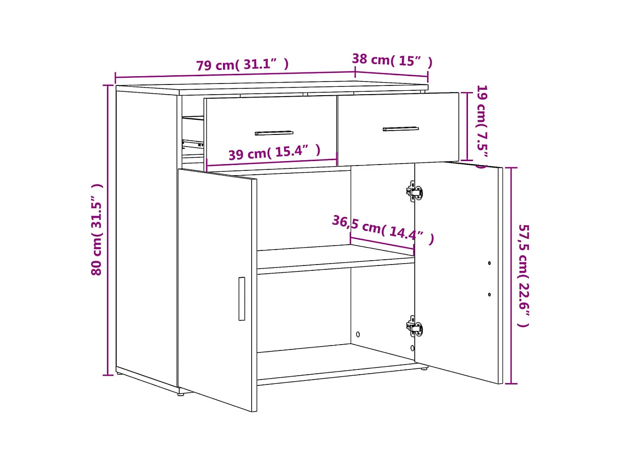 Dressoir 79x38x80 cm bewerkt hout grijs sonoma