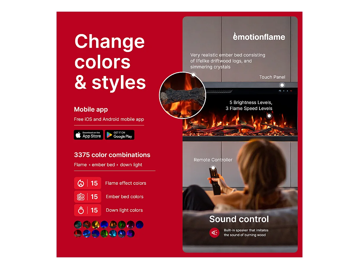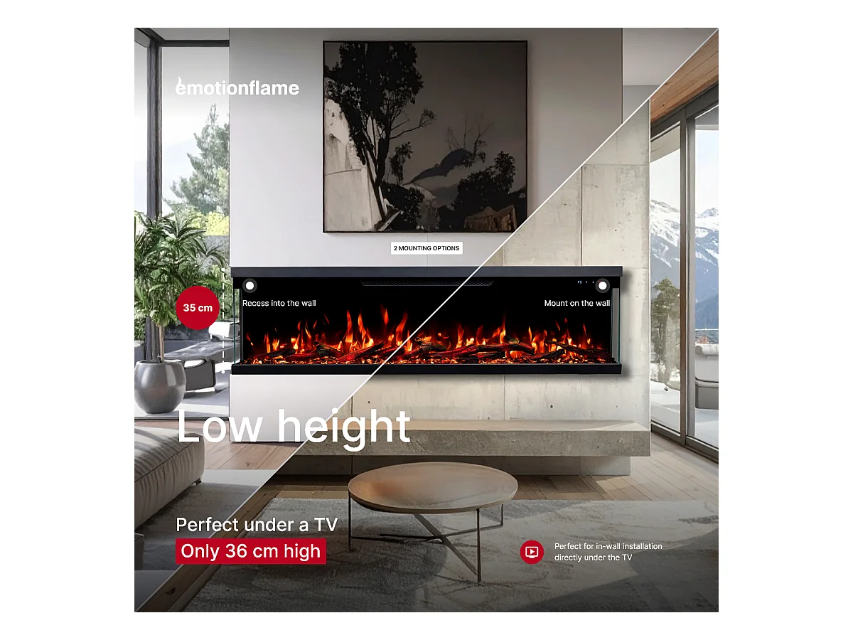 Driezijdige elektrische haard UNITY 107 - premium vlam - voor wand en inbouw - 107x19x36 cm - LED-haard met verwarming 900/1800 W