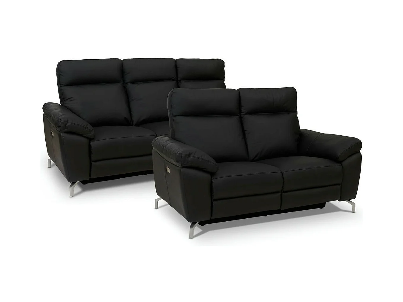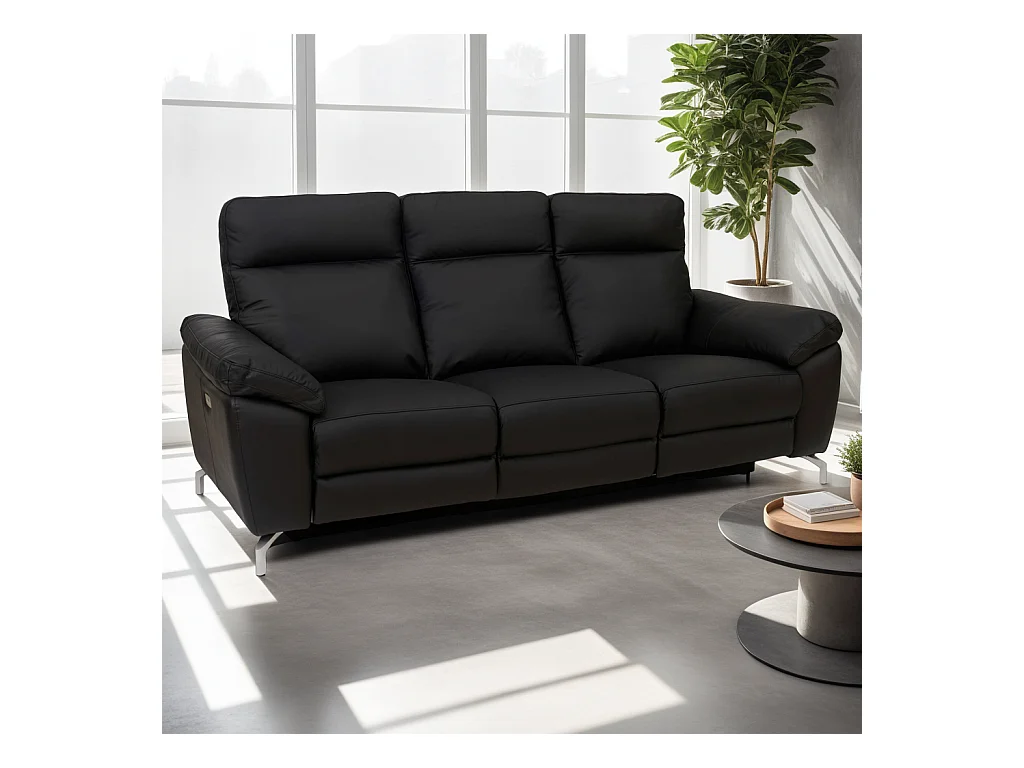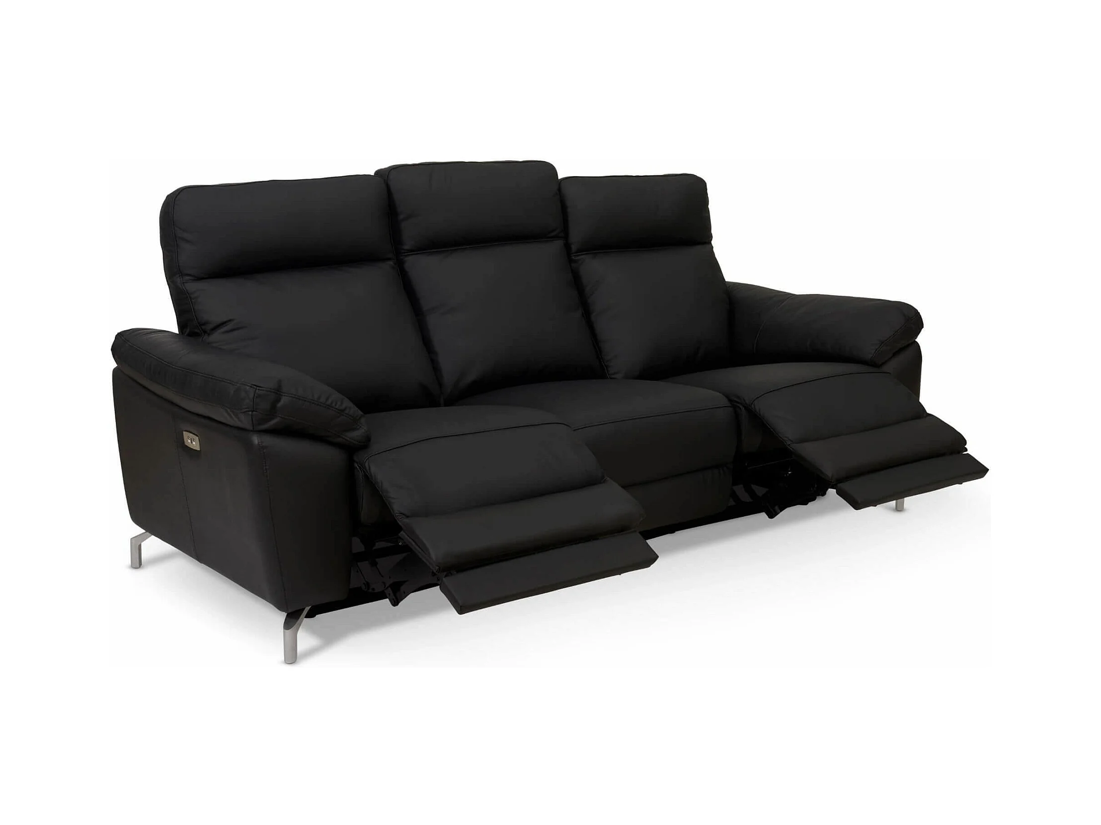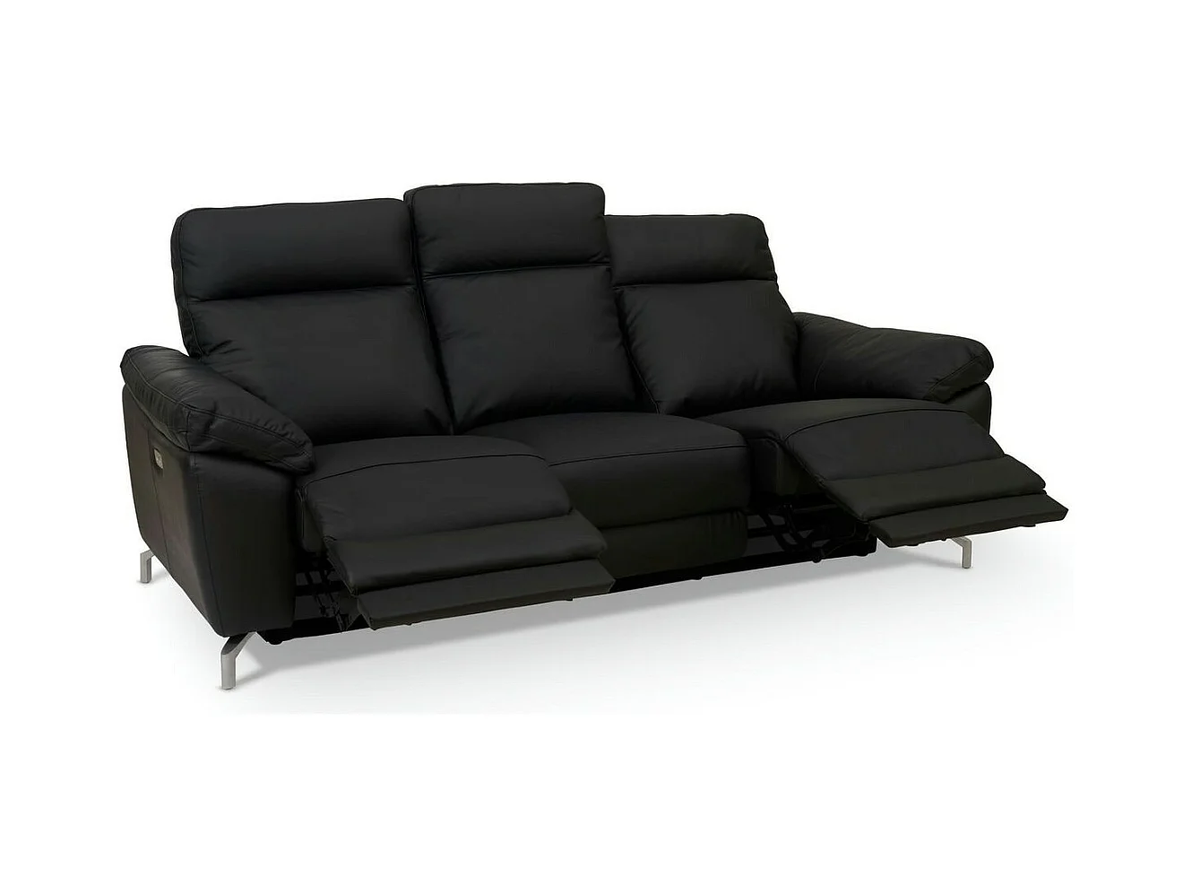 Driezits elektrische relaxbank Selesta van leer - zwart