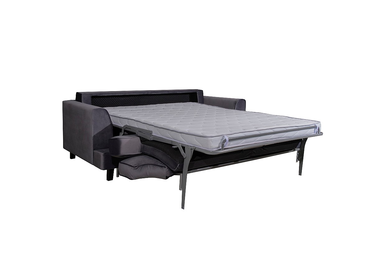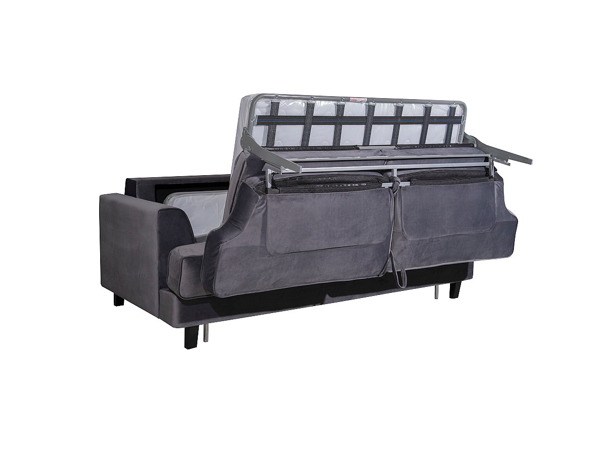 Express-uitklapmechanisme: in enkele seconden vormt u uw zitbank LAWRENCE om tot bed: trek eenvoudig aan de handvatten achter de kussens van de rugleuning om het matras uit te vouwen!