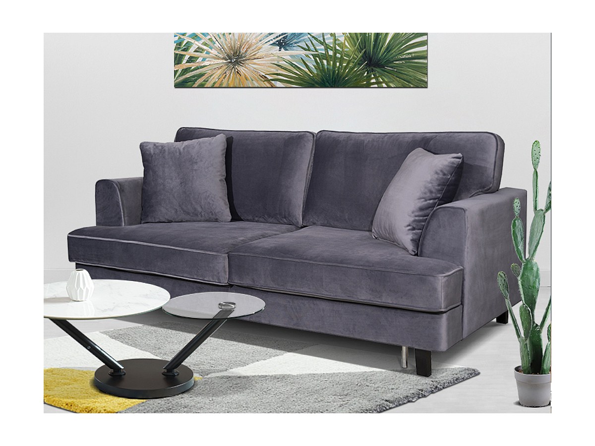 Kleur: grijs met grijze kussens.
