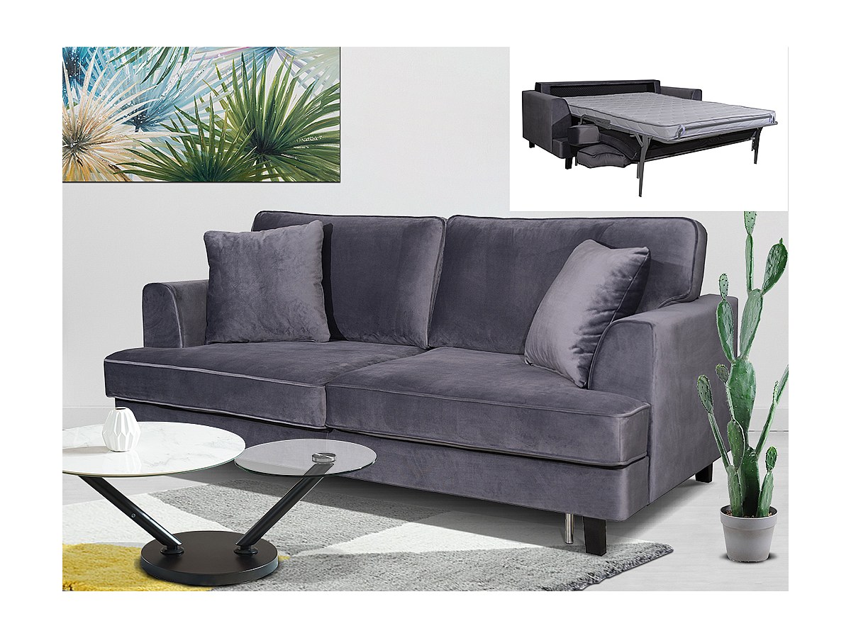 Driezits-express-bedbank van fluweel LAWRENCE - Grijs