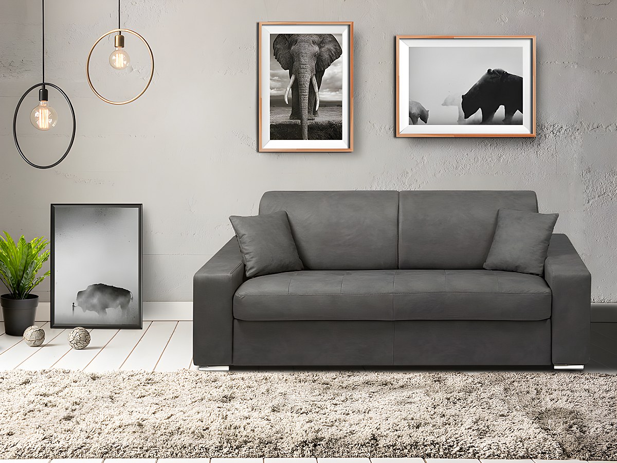 Driezits express bedbank van stof EMIR - Grijs - Slaap afmeting 140cm - matras 14cm