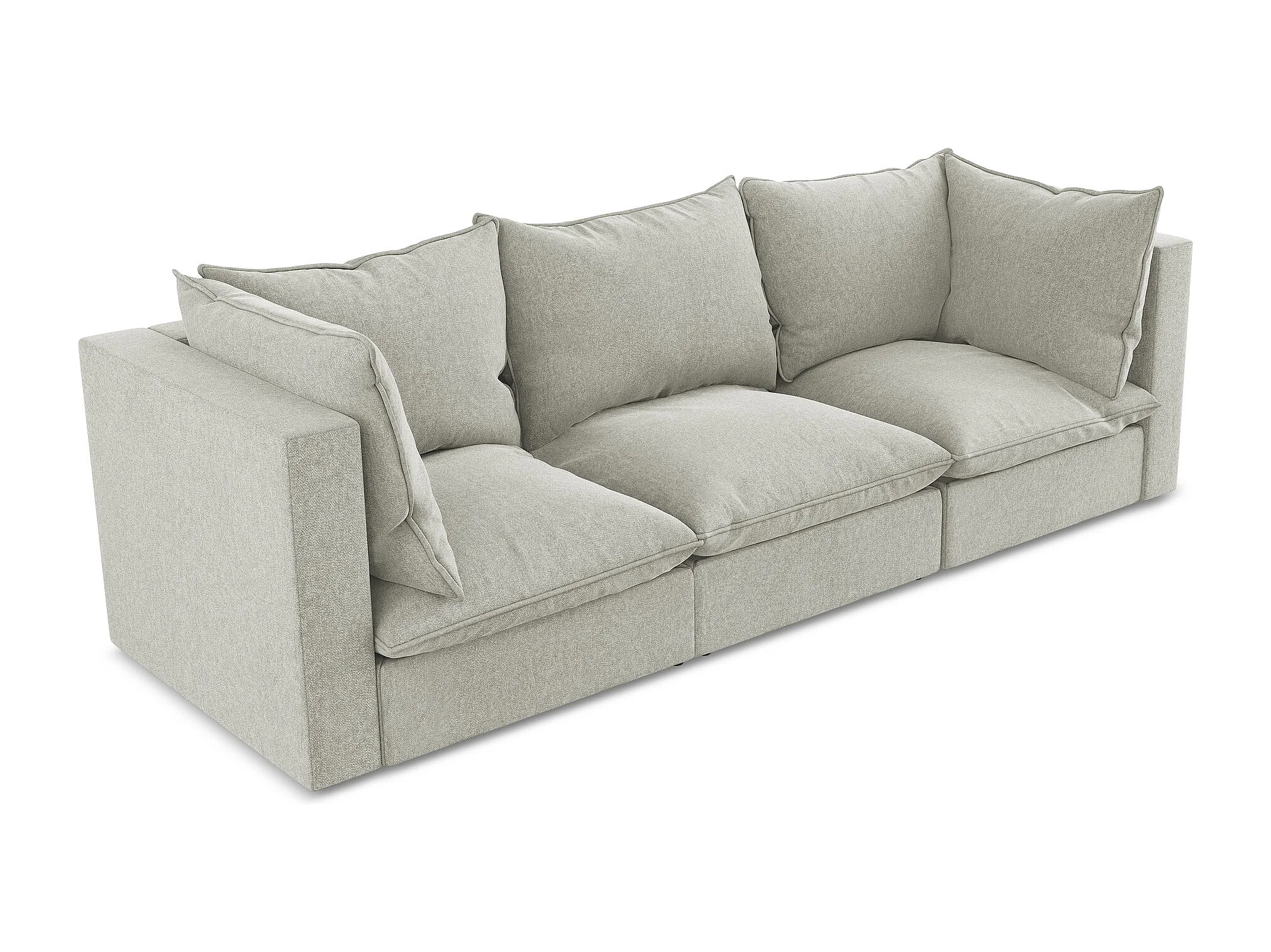 Driezits modulaire bank van lichtgrijs velours - MANAO