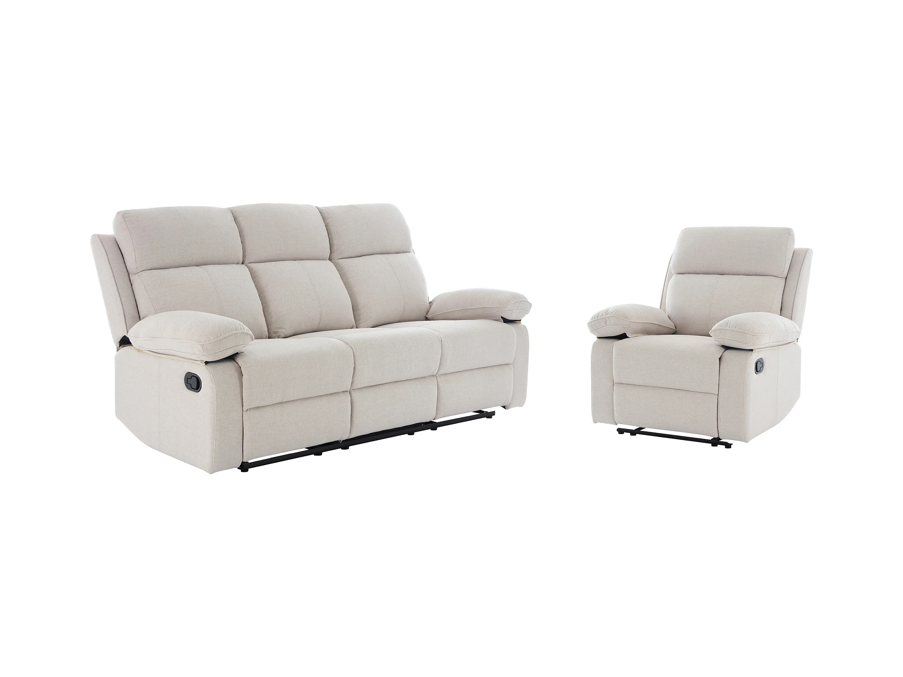 Driezits-relaxbank en relaxfauteuil van beige gechineerde stof LANA