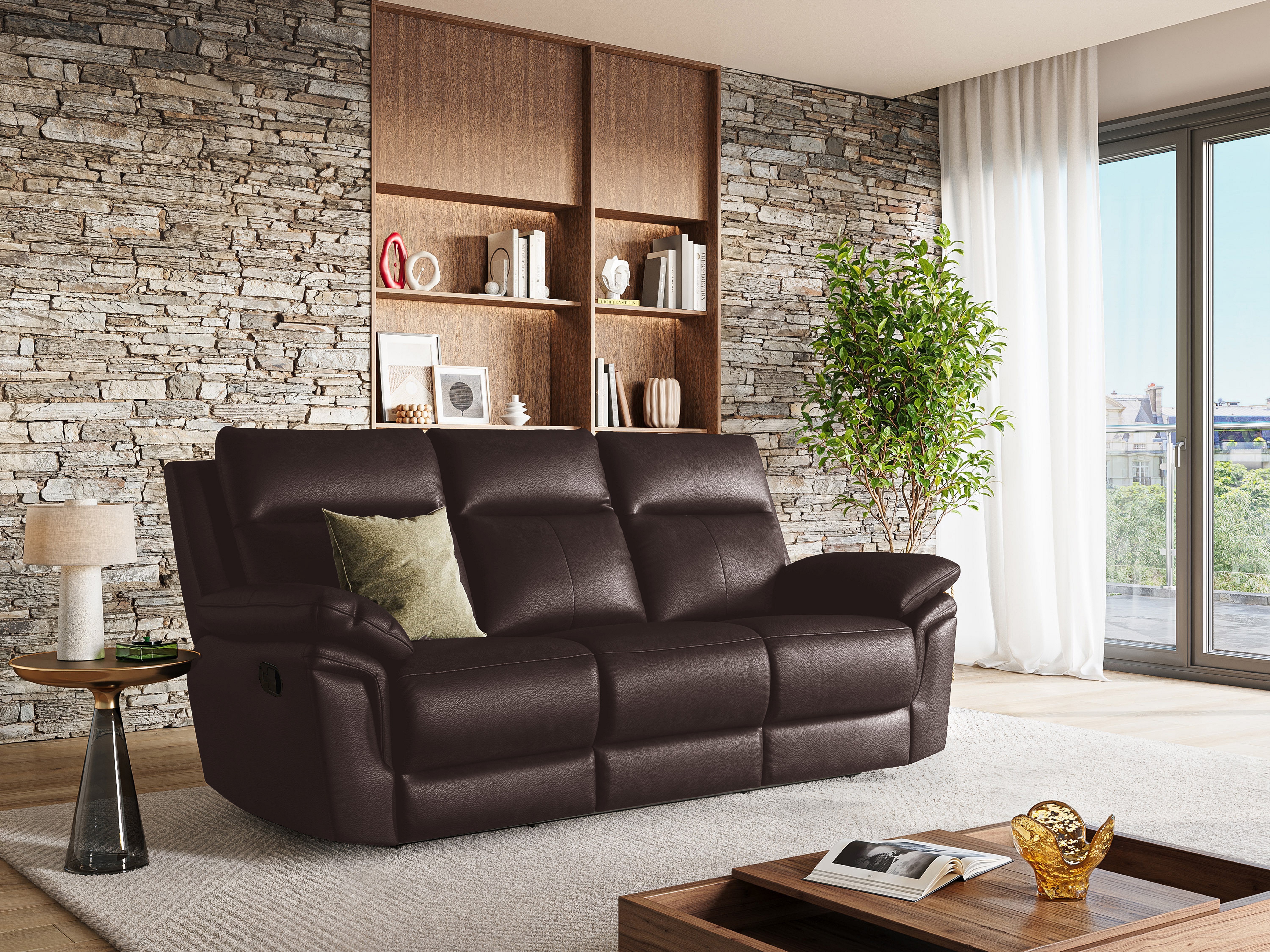 Driezits relaxbank van buffelleer PAKITA - Bruin