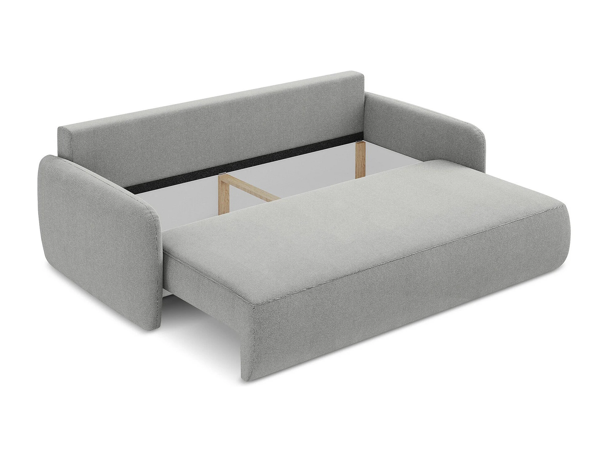 Driezits-slaapbank van lichtgrijs textuurstof - LILO