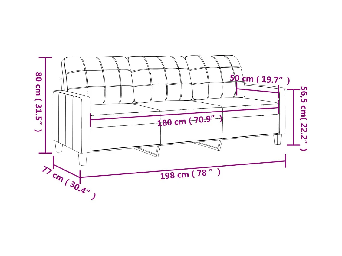 Driezitsbank 180 cm kunstleer crèmekleurig