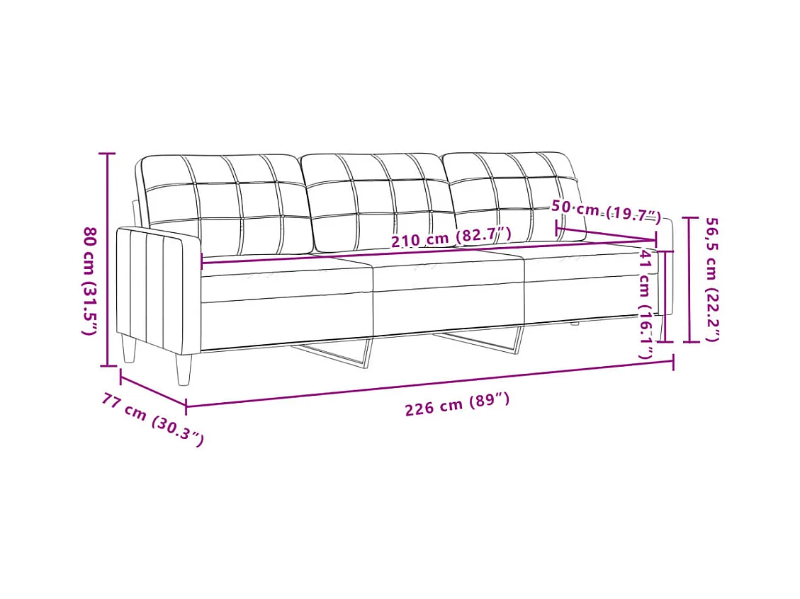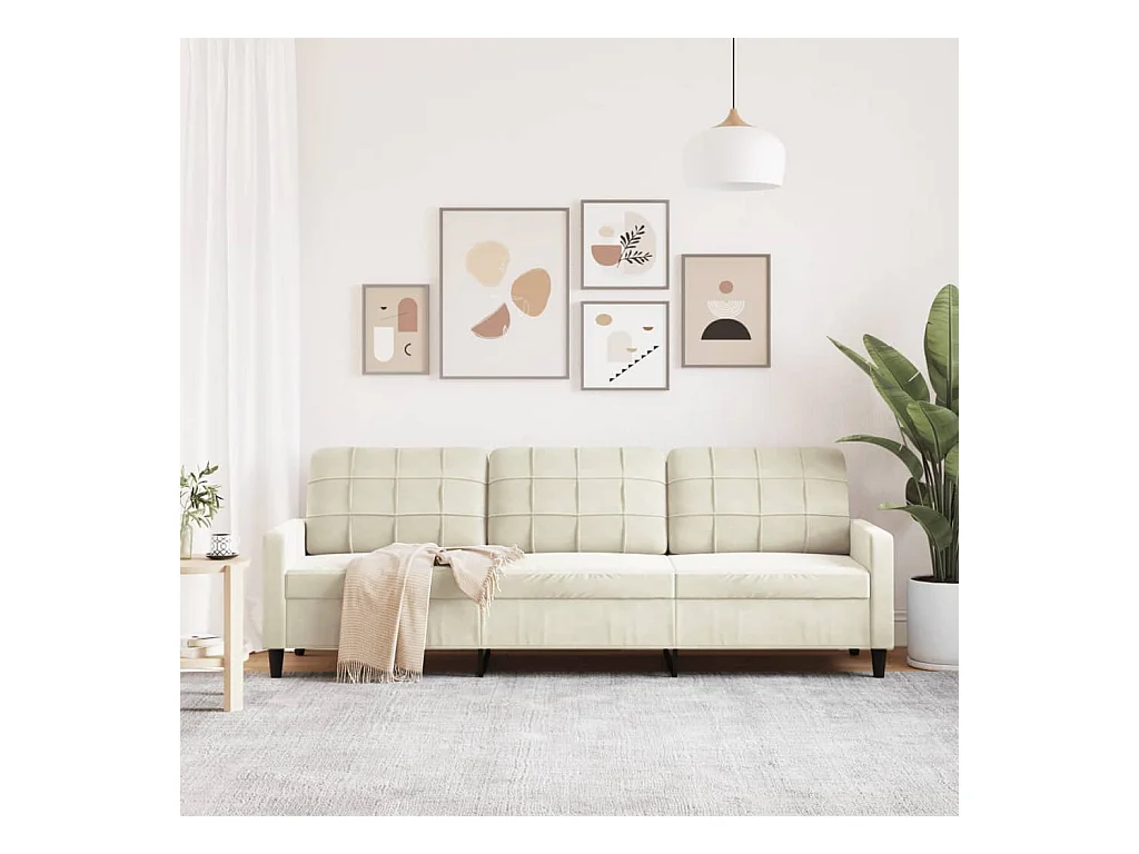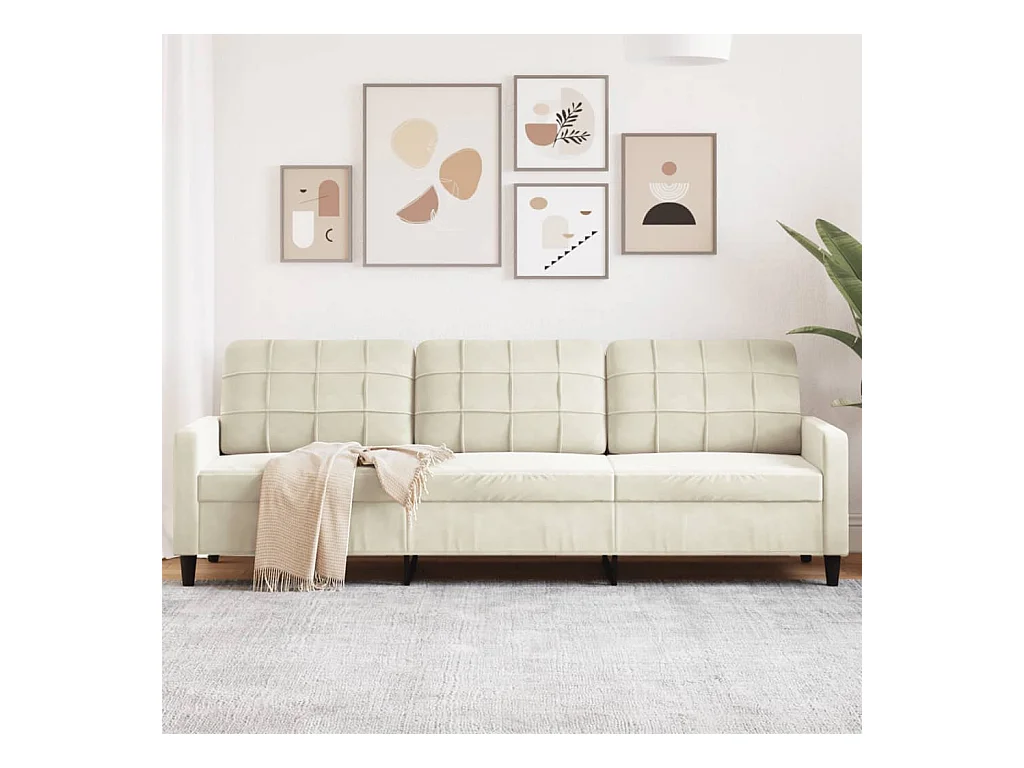 Driezitsbank 210 cm fluweel crèmekleurig