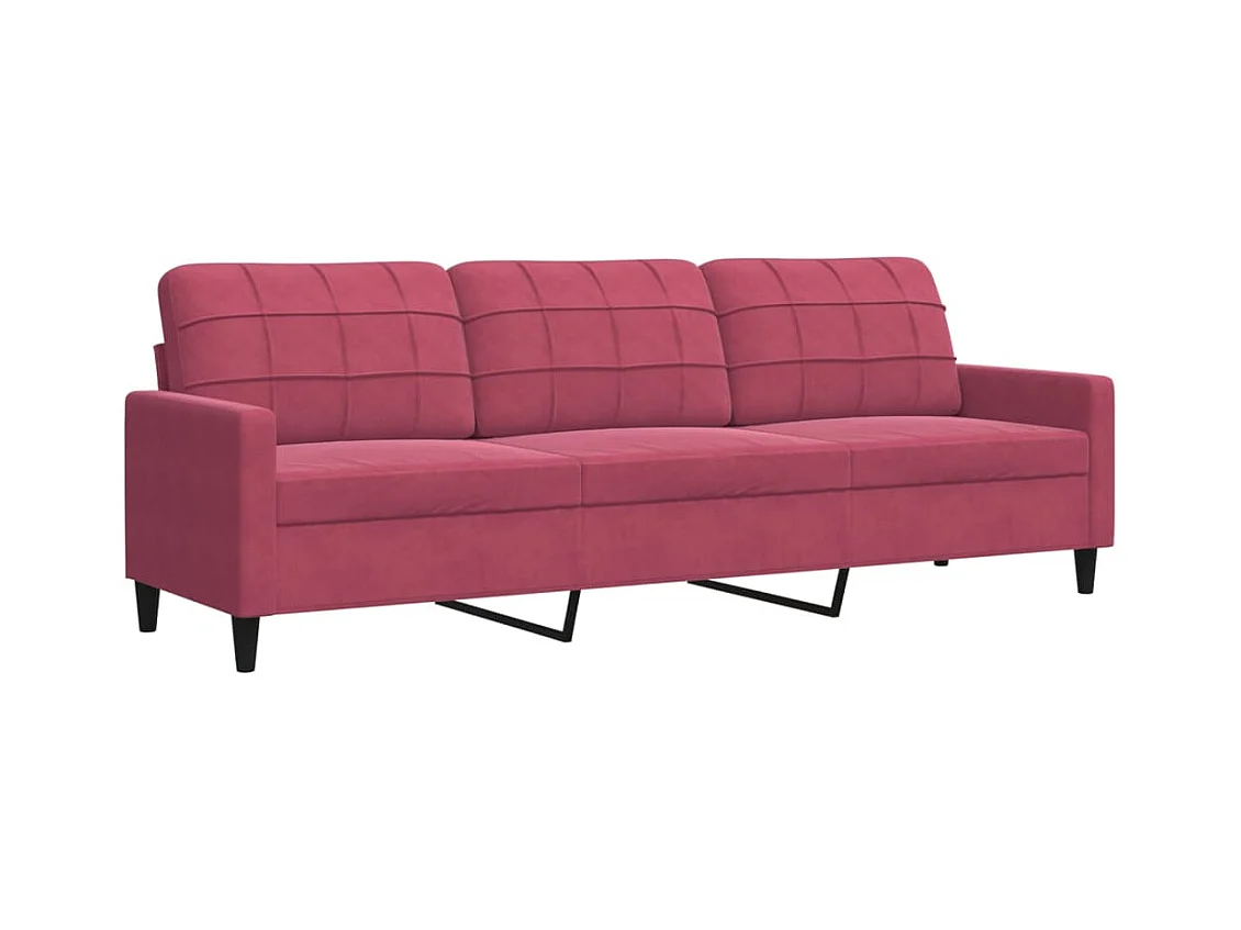 3-zitsbank met sierkussens 210 cm sierkussen fluweel wijnrood