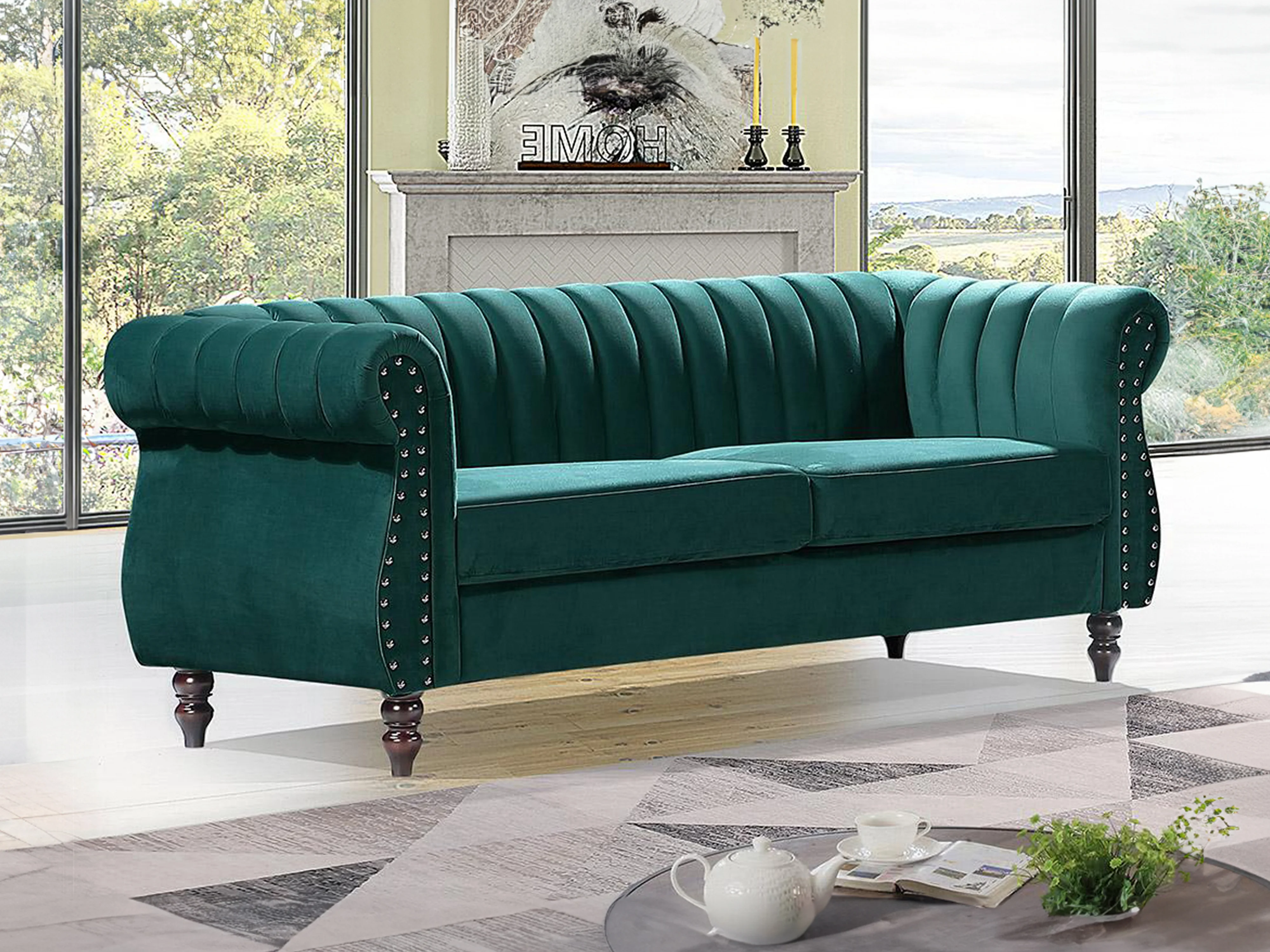 Driezitsbank chesterfield in smaragdgroene fluweel TRUMBO
