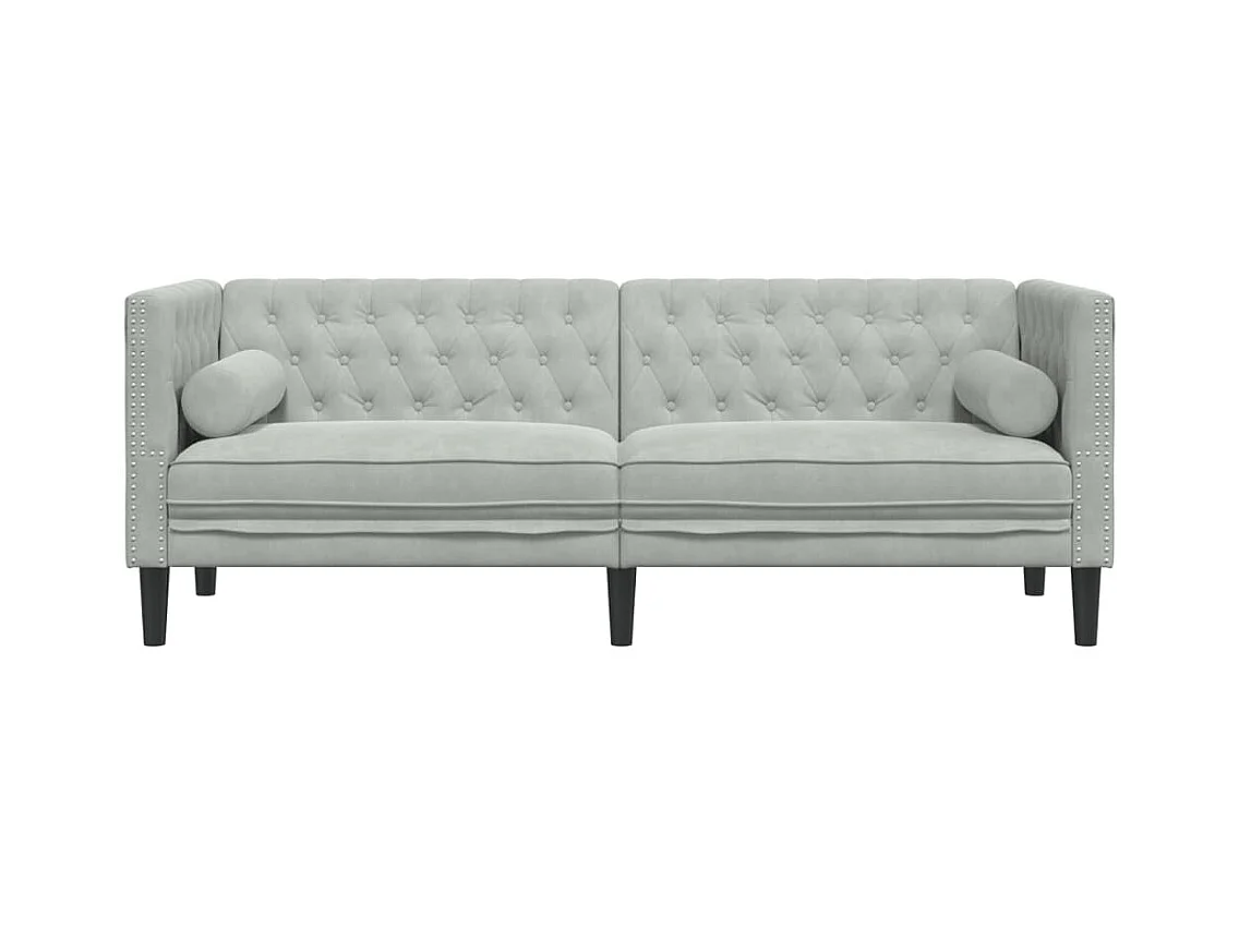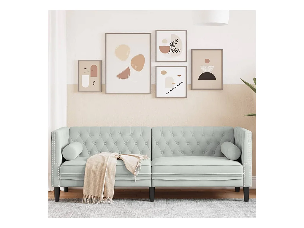 Driezitsbank Chesterfield-stijl met bolsters fluweel lichtgrijs