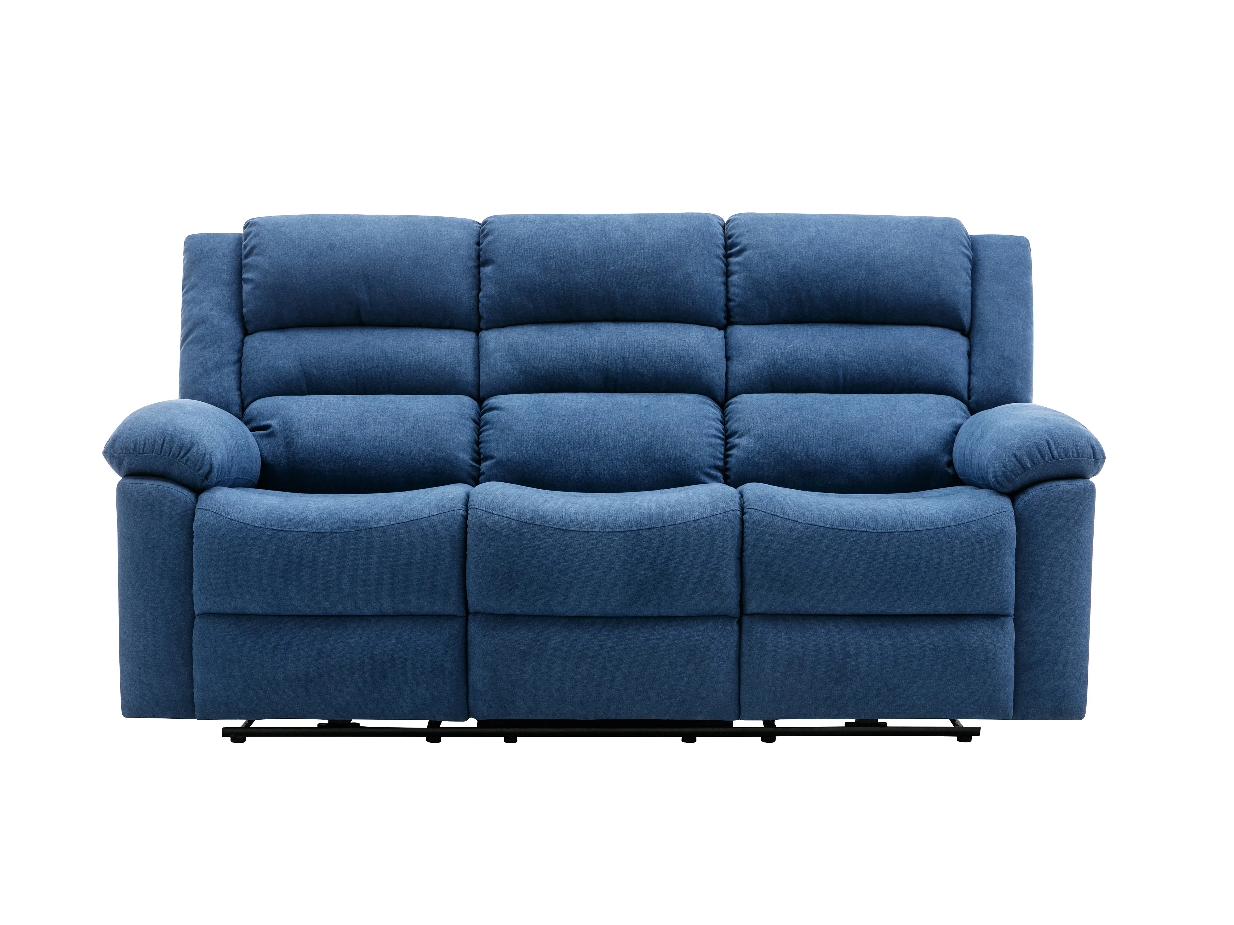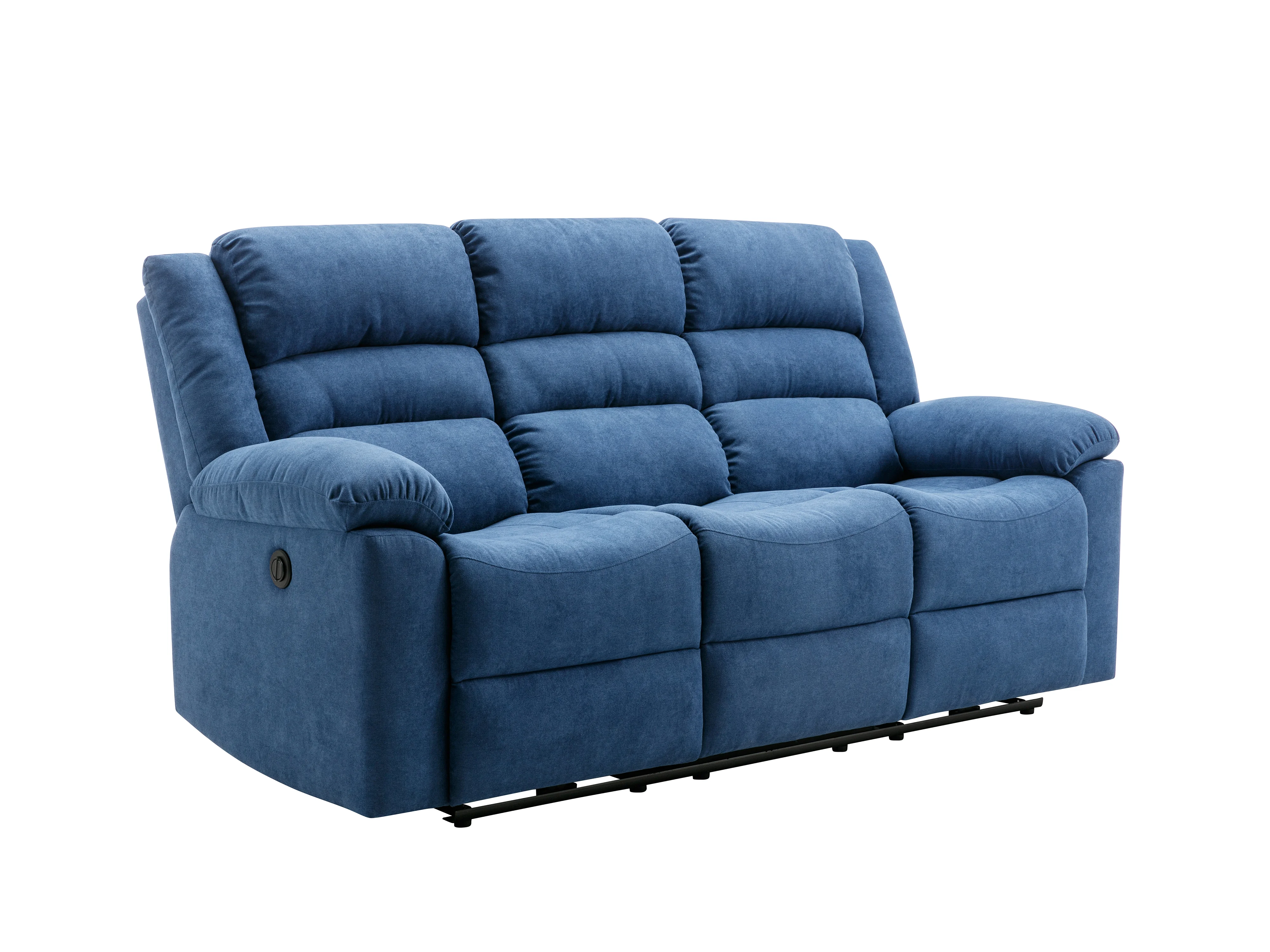 Driezitsbank en tweezitsbank met elektrische relaxfunctie van blauwe stoffen bekleding BUROLO