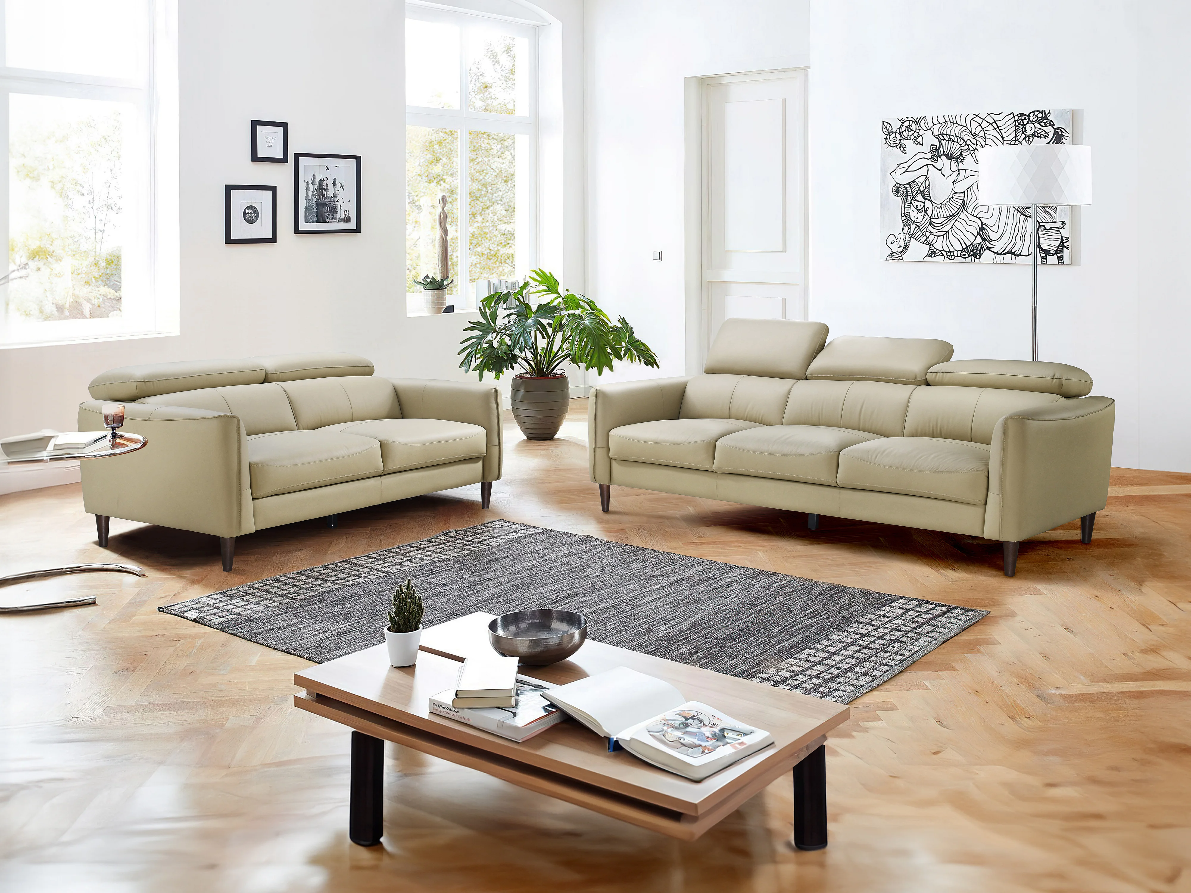 Driezitsbank en tweezitsbank van beige leer SALVI