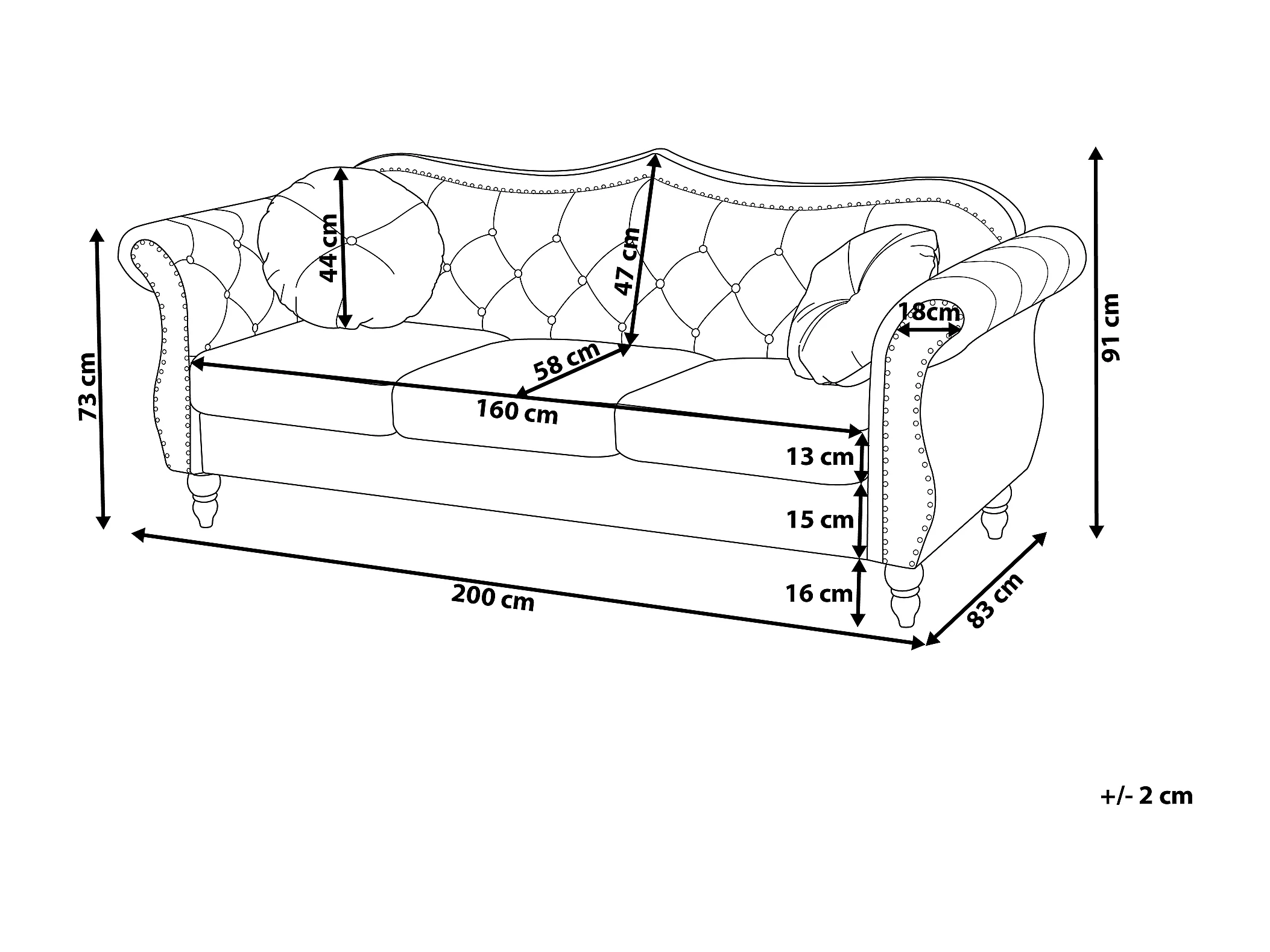 Bank SKIEN Fluweel Zwart 3-zitter