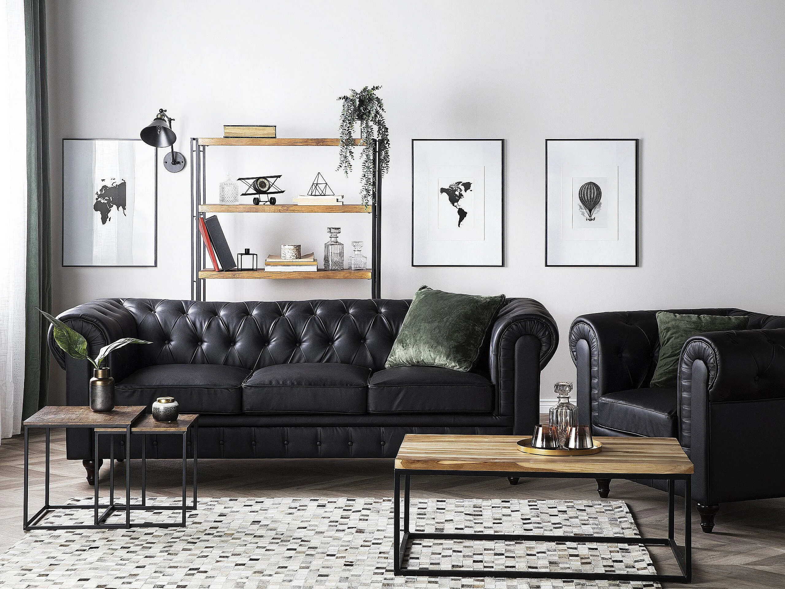 Bank CHESTERFIELD Kunstleer Zwart 3-zitter