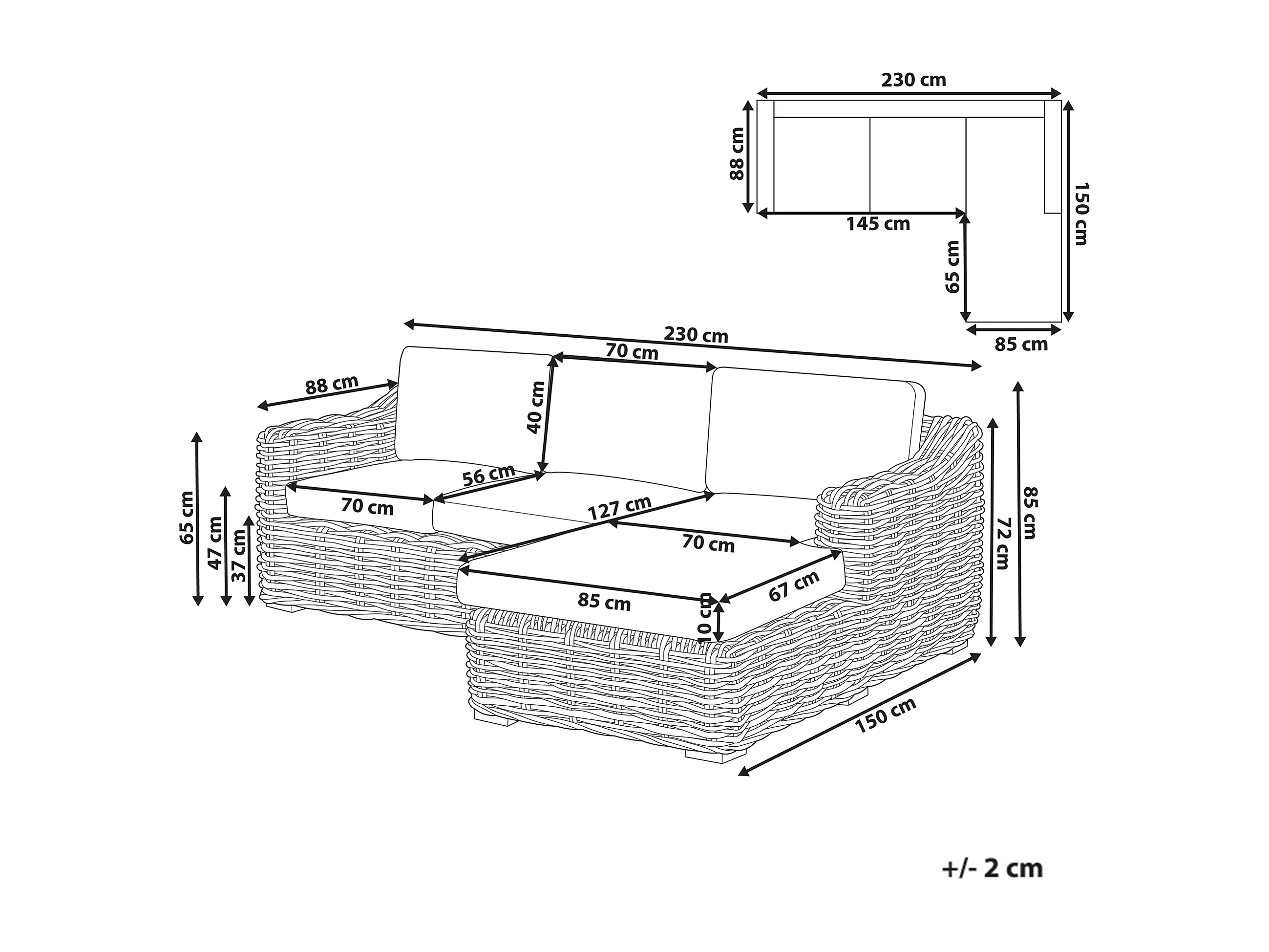 Driezitsbank Linkerzijde Rotan Natuurlijk BRIATICO