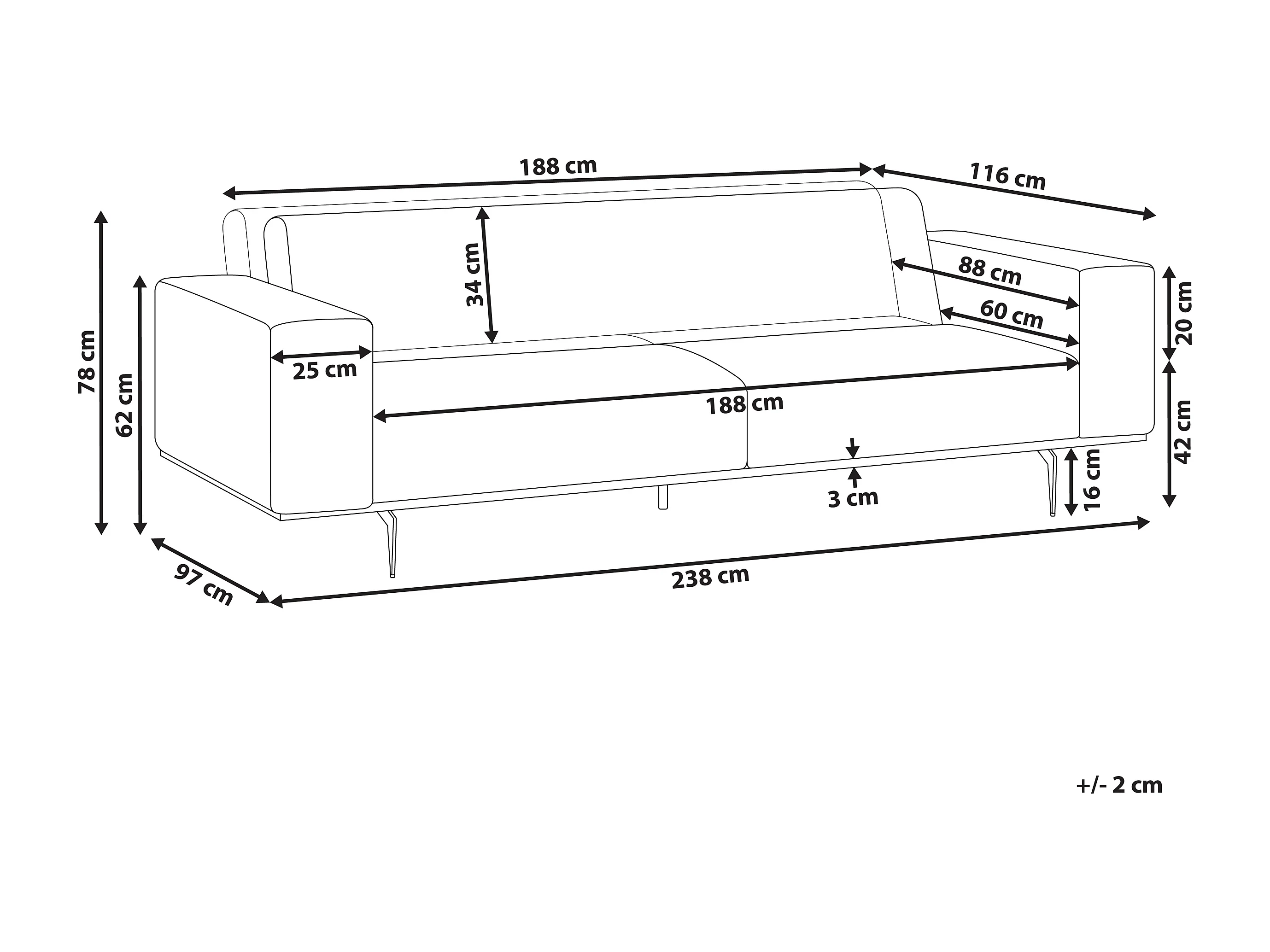 Driezitsbank linnen lichtbruin OSELO