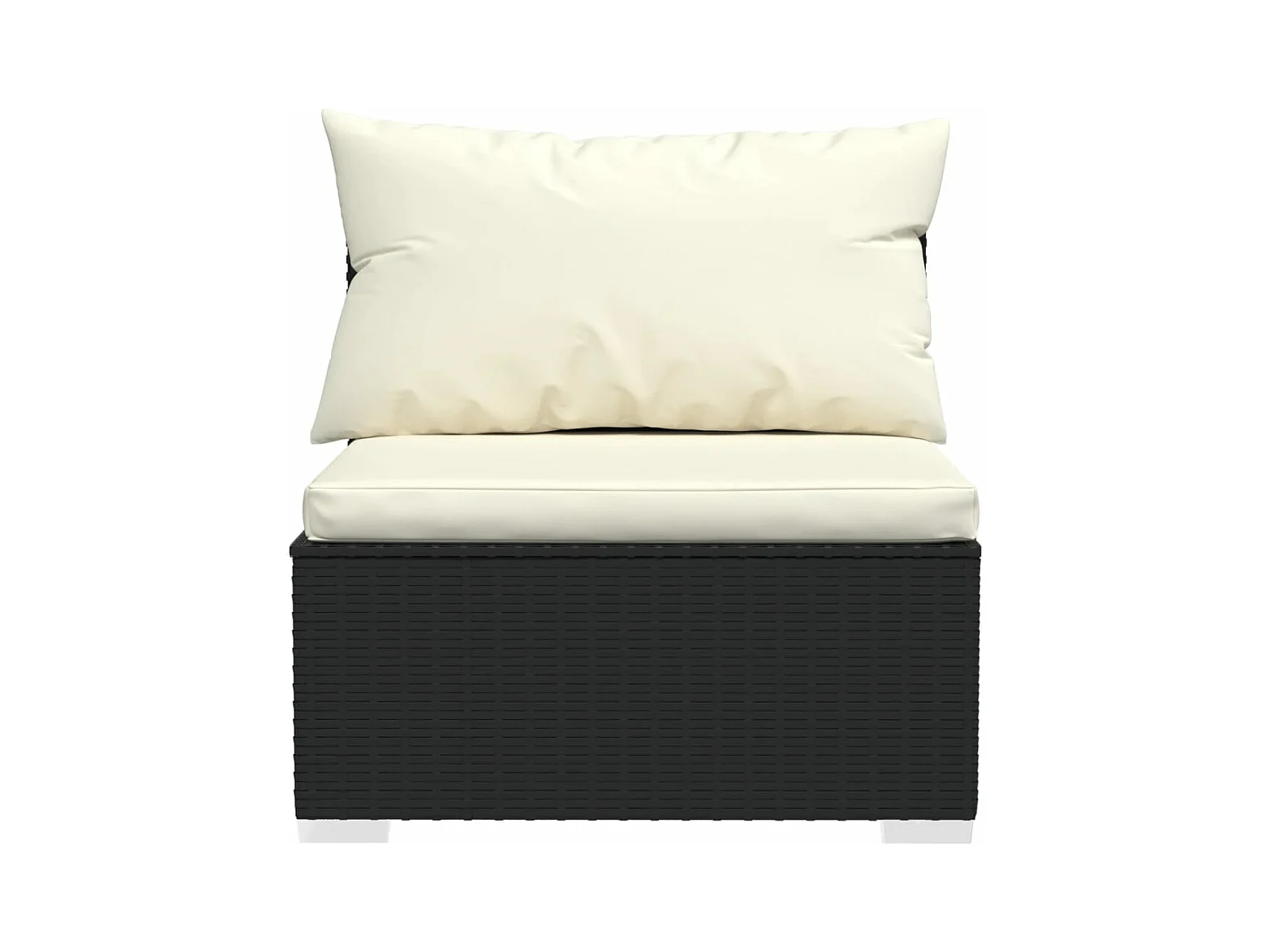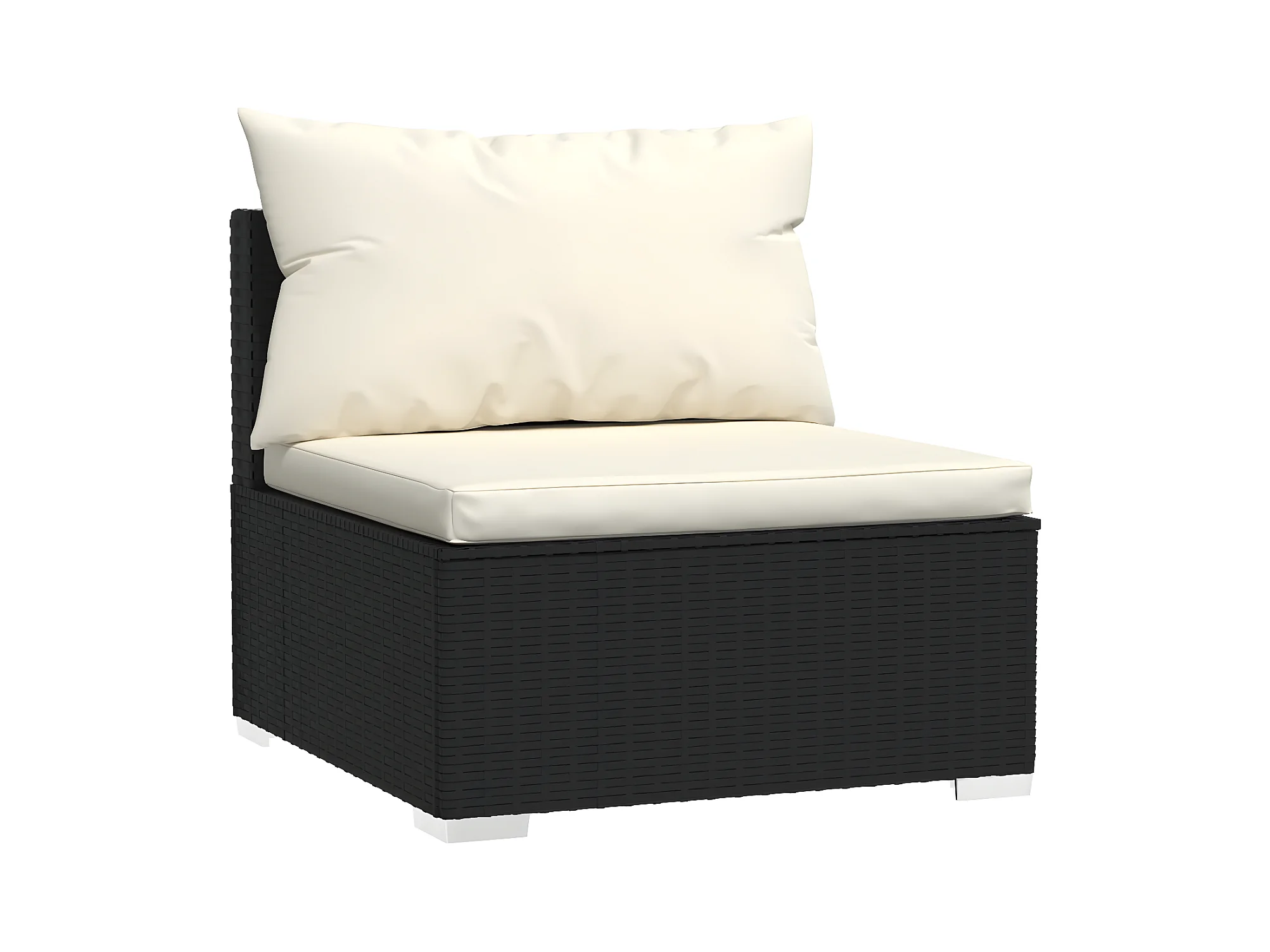 Tuinmiddenbank met kussens poly rattan zwart BE518658