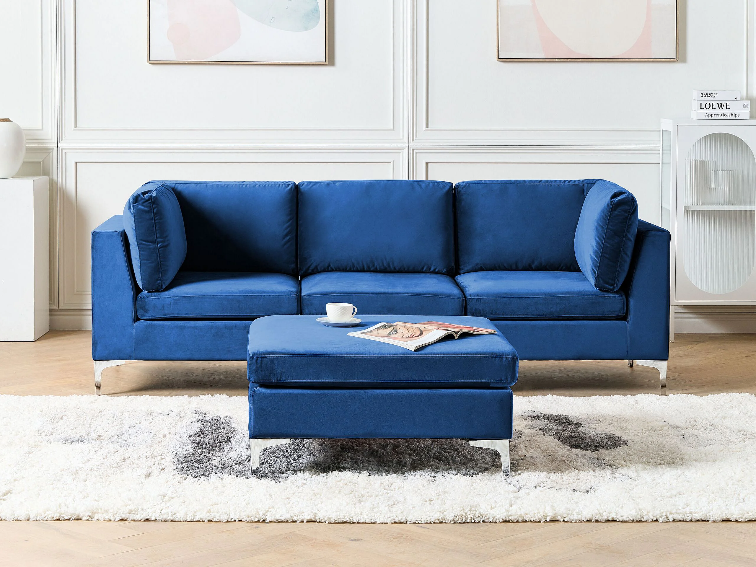 Modulaire bank EVJA Fluweel Marineblauw Met ottomaan 3-zitter