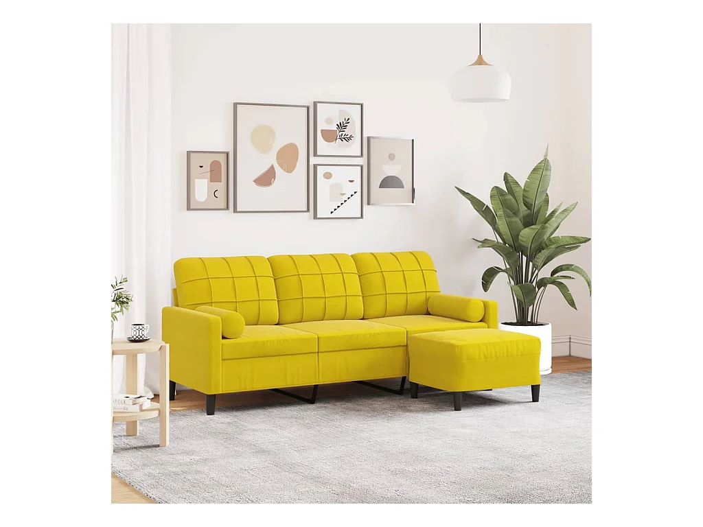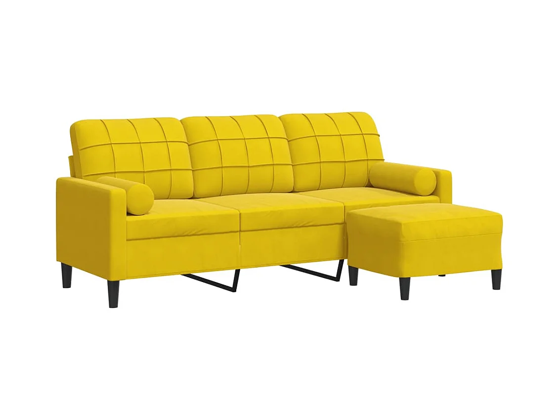 3-zitsbank met voetenbank 210 cm fluweel geel