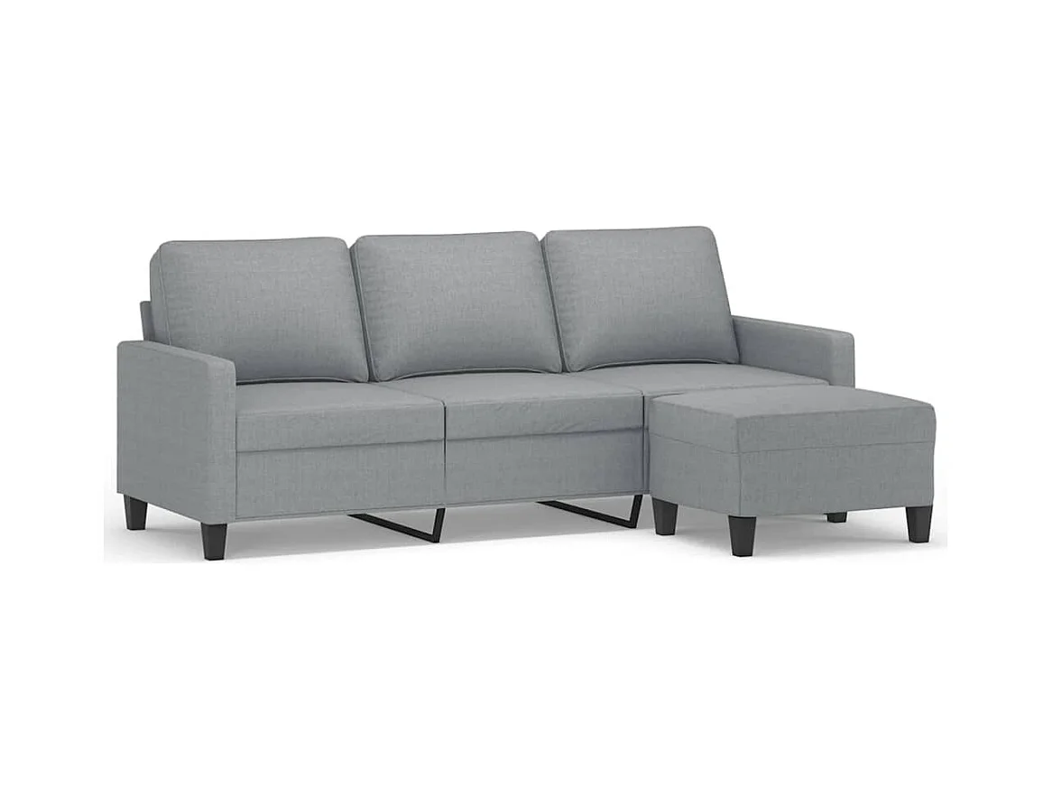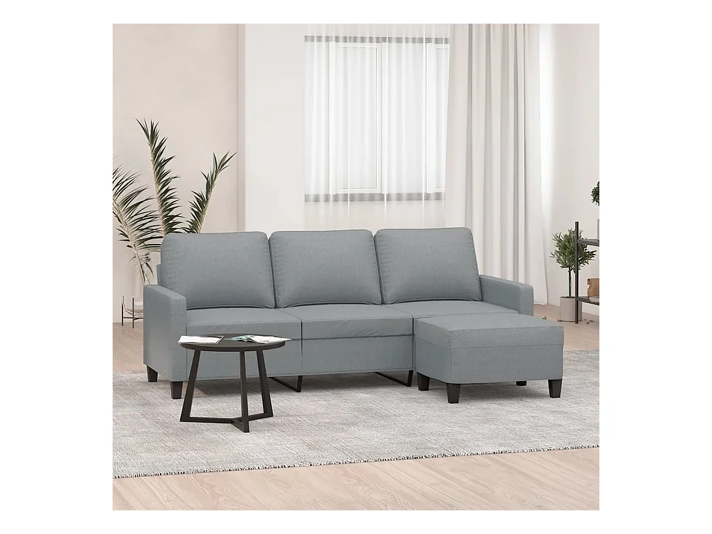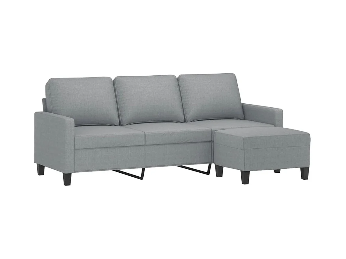 Driezitsbank met voetenbank 180 cm stof lichtgrijs