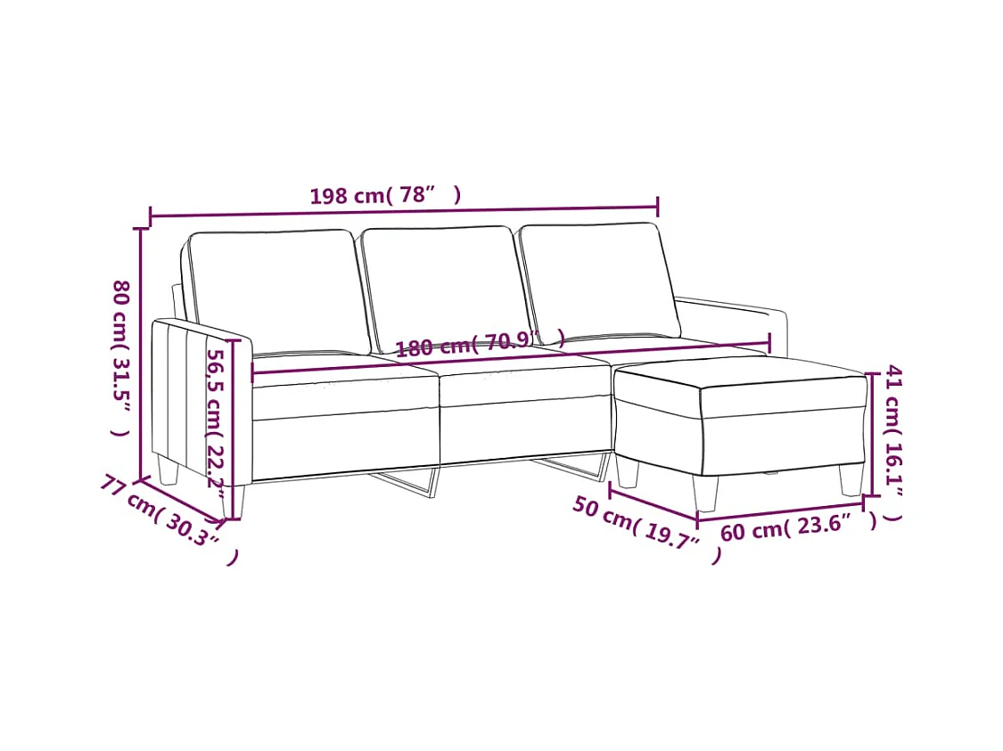 Driezitsbank met voetenbank 180 cm stof donkergrijs