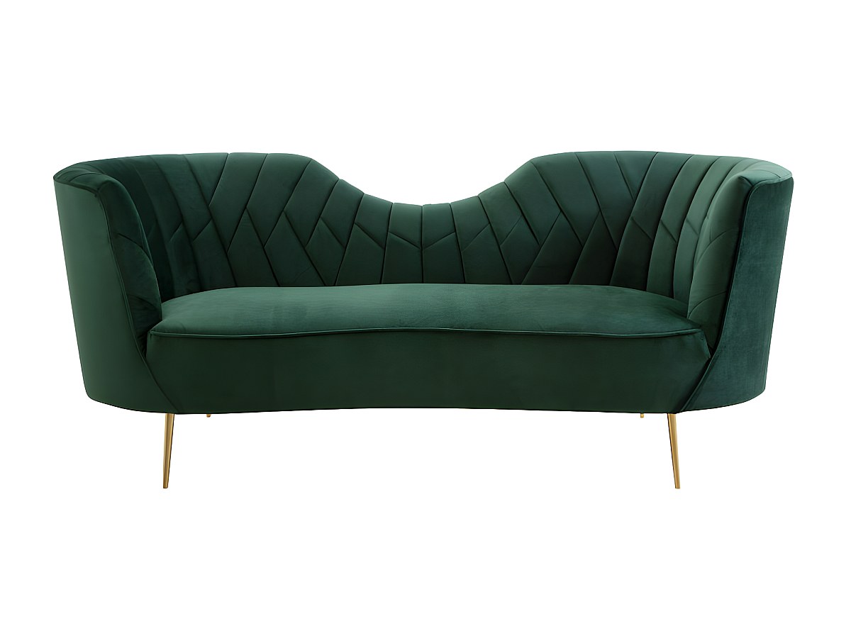 Met zijn goudkleurig metalen poten en ingekeepte rugleuning met capitons is de zitbank ADELE bijzonder elegant.