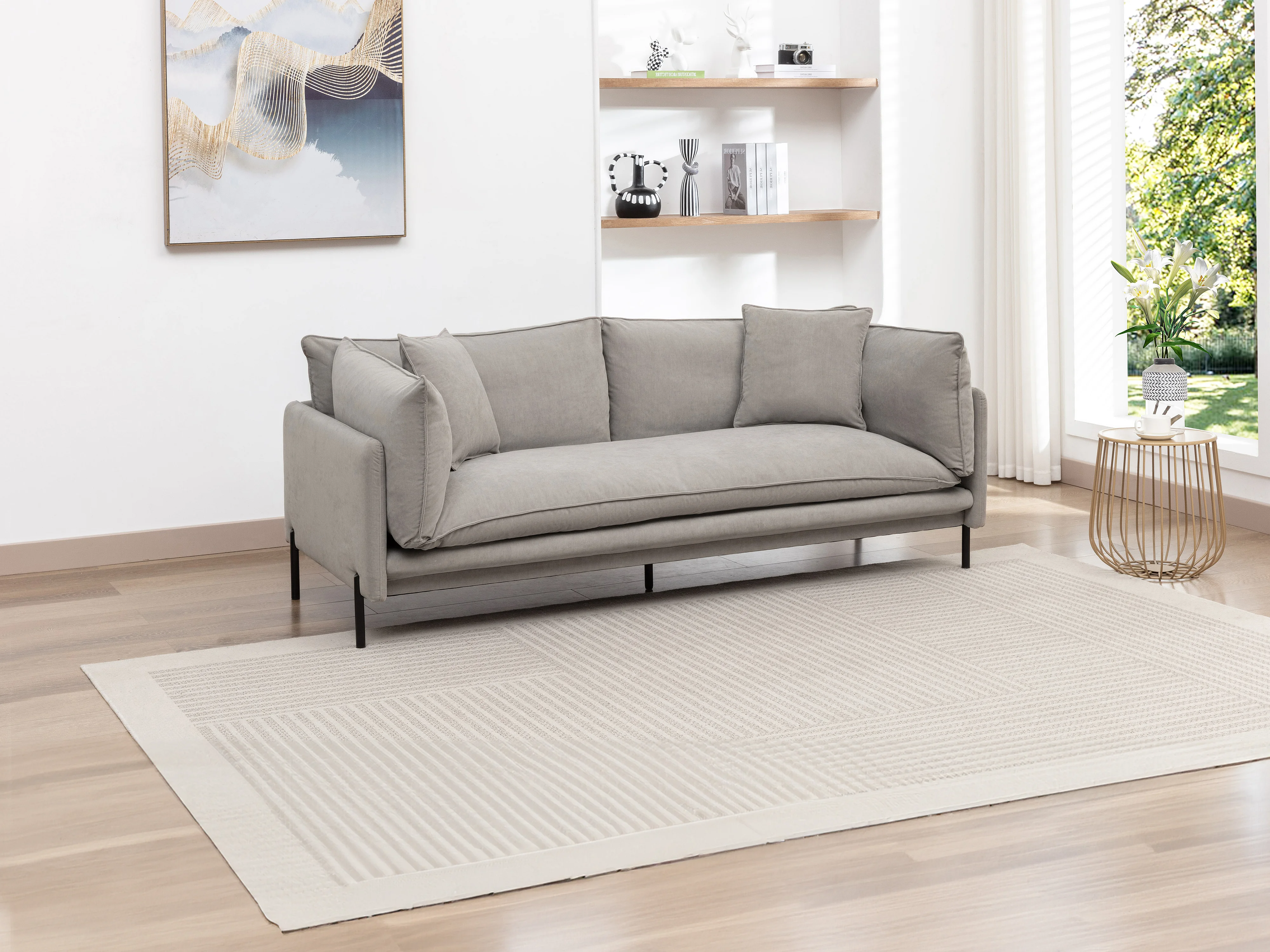Driezitsbank van grijze stof CORFINO
