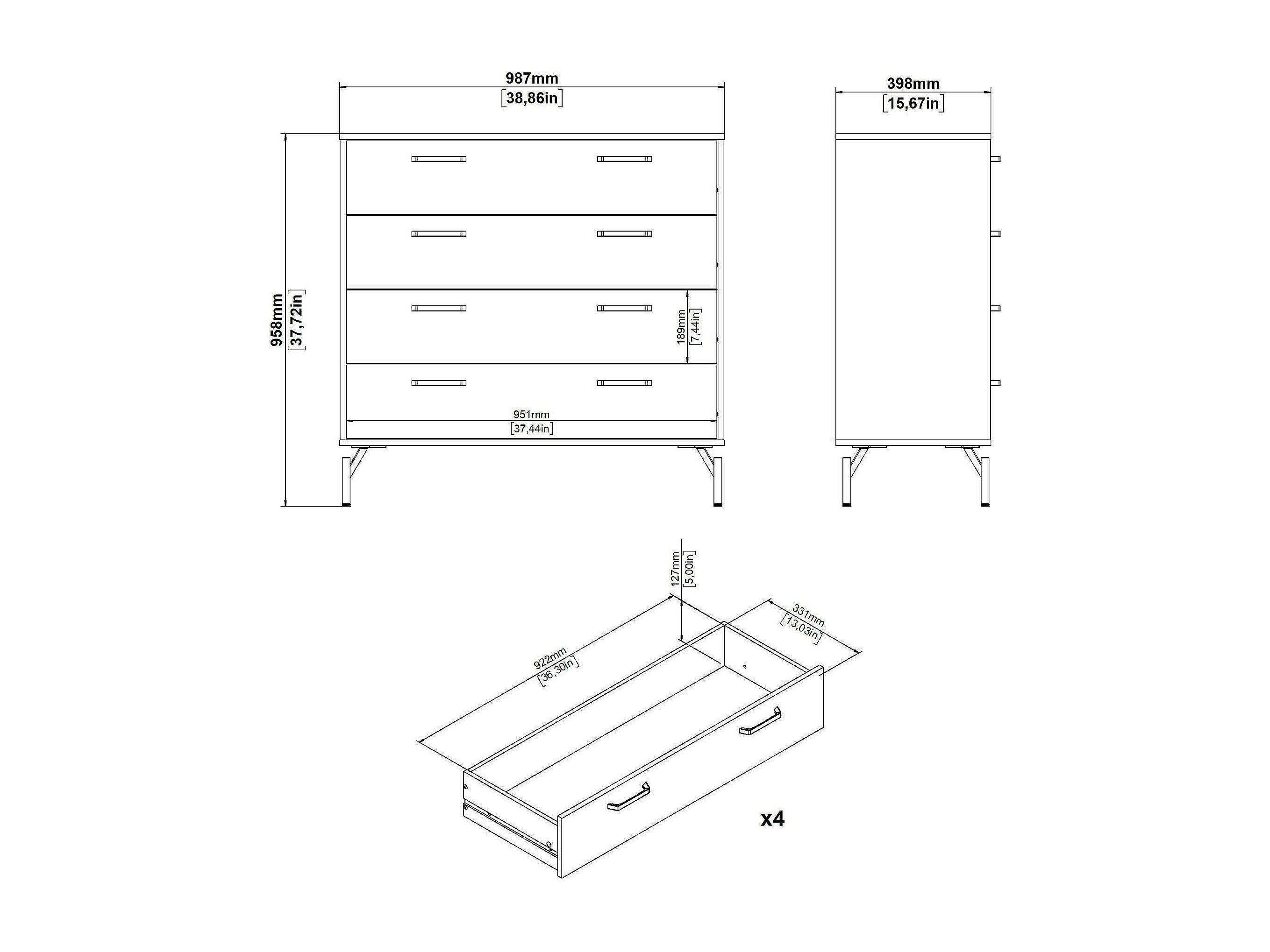 LADENKAST - Multifunctionele ladekast, Slaapkamerladekast, Kast met lades, 99x40 h96 cm, Zwart STRUCTUUR EN GEBRUIK - Ladekast met lades - Lage multifunctionele ladekast, perfect voor de inrichting van een slaapkamer, woonkamer, slaapkamer. , woonkamer op een praktische en elegante manier of opbergruimte naast een kledingkast - De lades zijn zeer ruim, waardoor je alles wat je nodig hebt er discreet en netjes in kunt opbergen - Artikel met modern en functioneel ontwerp, bovenaan oppervlak kunt u uw favoriete ornamenten plaatsen om het product een persoonlijke stijl te geven en de inrichting compleet te maken. KWALITEIT EN DESIGN - Meubelartikel met een modern en elegant design, perfect voor het inrichten van een eigentijdse en lichte omgeving - Ideaal voor wie op zoek is naar functionaliteit en ruimtebesparende oplossingen, dit product is perfect voor huizen en appartementen van elke grootte - Twee jaar garantie vanaf de datum van aankoop. TECHNISCHE EIGENSCHAPPEN - Veelzijdig meubelaccessoire, ontworpen voor eenvoudige integratie met ander meubilair - Duurzame verpakking, ontworpen voor e-commerce - Materiaal: melamine spaanplaat - Aanvullende informatie: EPA 40 CFR TSCA gecertificeerd artikel - Formaldehyde-afgifte voldoet aan IOS-richtlijnen /MAT/0181/EN 17346 - Gedemonteerd - Voorzien van montageset - Vier laden. AFMETINGEN IN CM - Ladekast: Lengte: 98,7 Breedte: 39,8 Hoogte: 95,8 - Extra afmetingen: Ladeopening: 21,4 cm