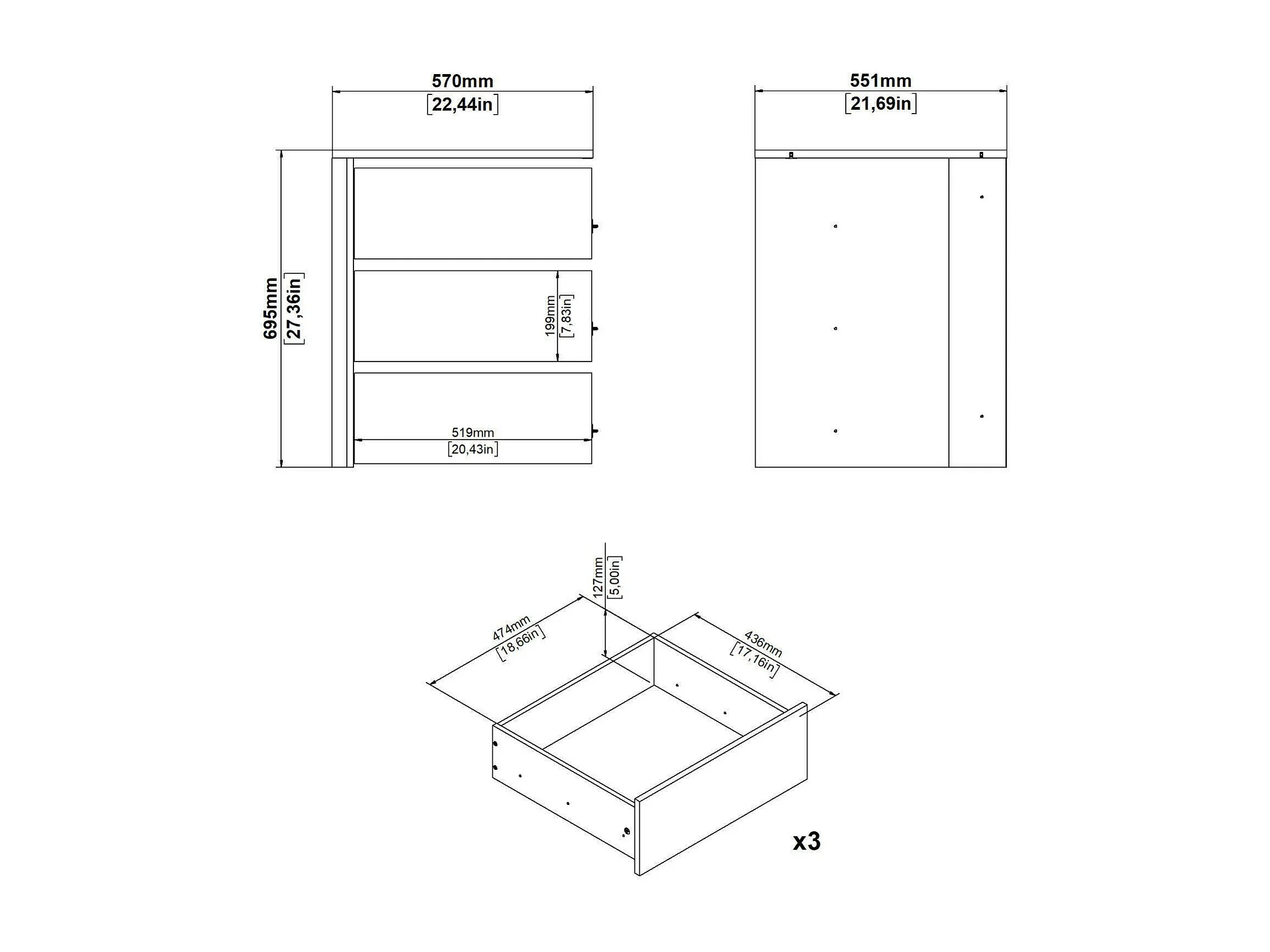 Artic ladekast, Multifunctionele ladekast, Slaapkamer ladekast, Kast met lades, 77x50 h70 cm, Wit