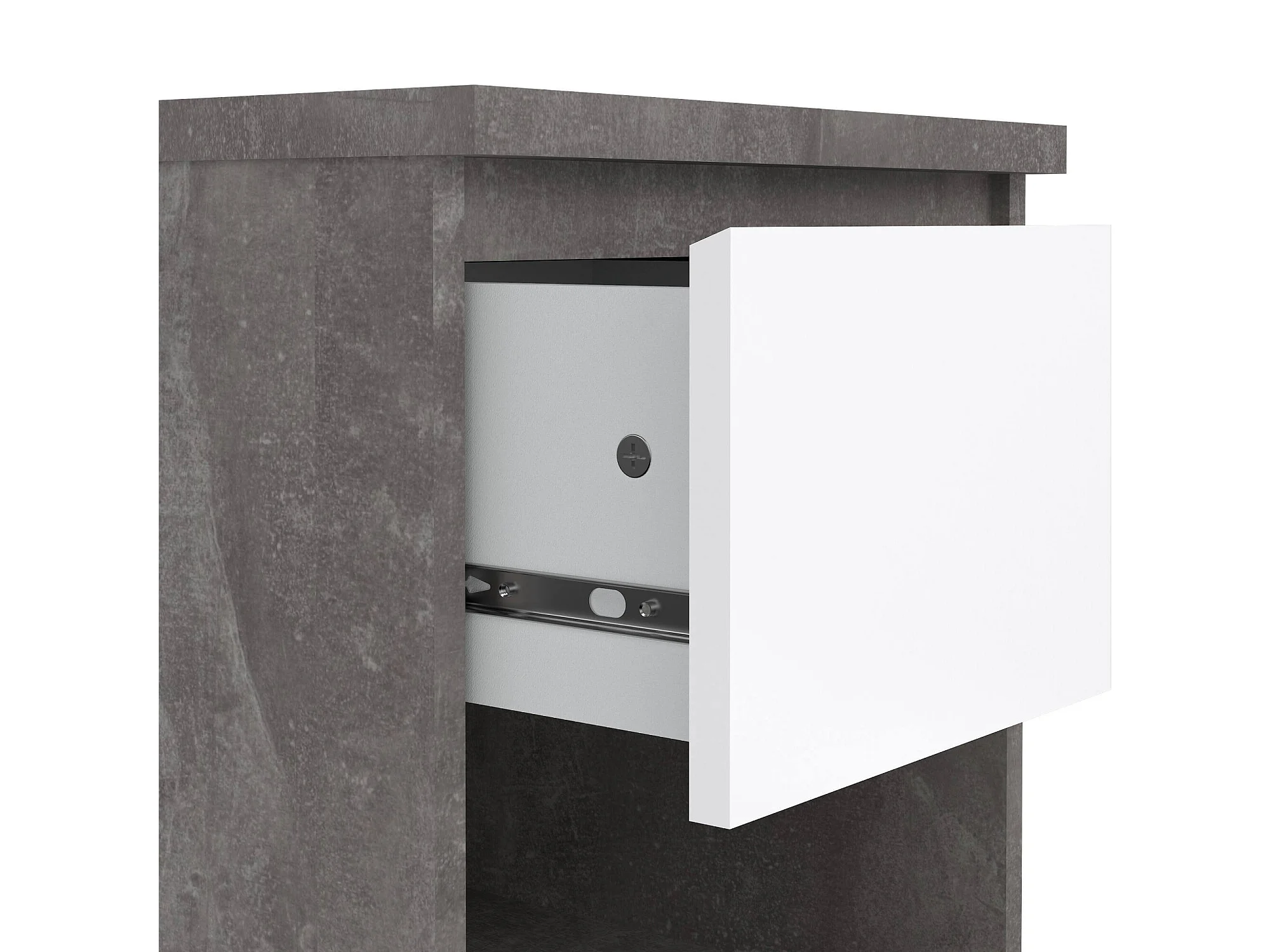 Dross nachtkastje, Lage ladekast, Nachtkastje, Bedplank, 40x40 h50 cm, Cement en Wit
