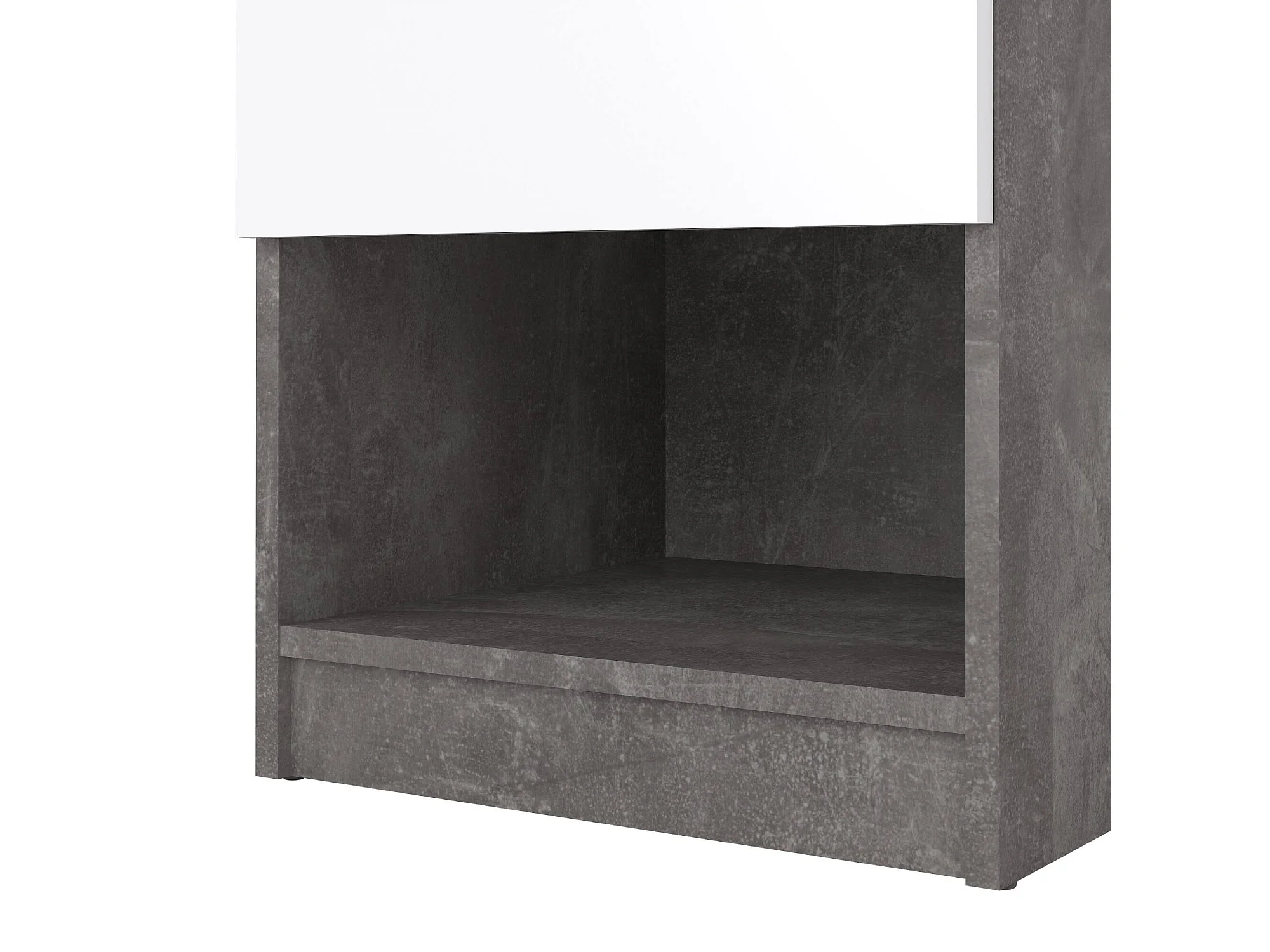 Drosi nachtkastje, Lage ladekast, Nachtkastje, Bedplank, 145x26 h80 cm, Cement en Wit
