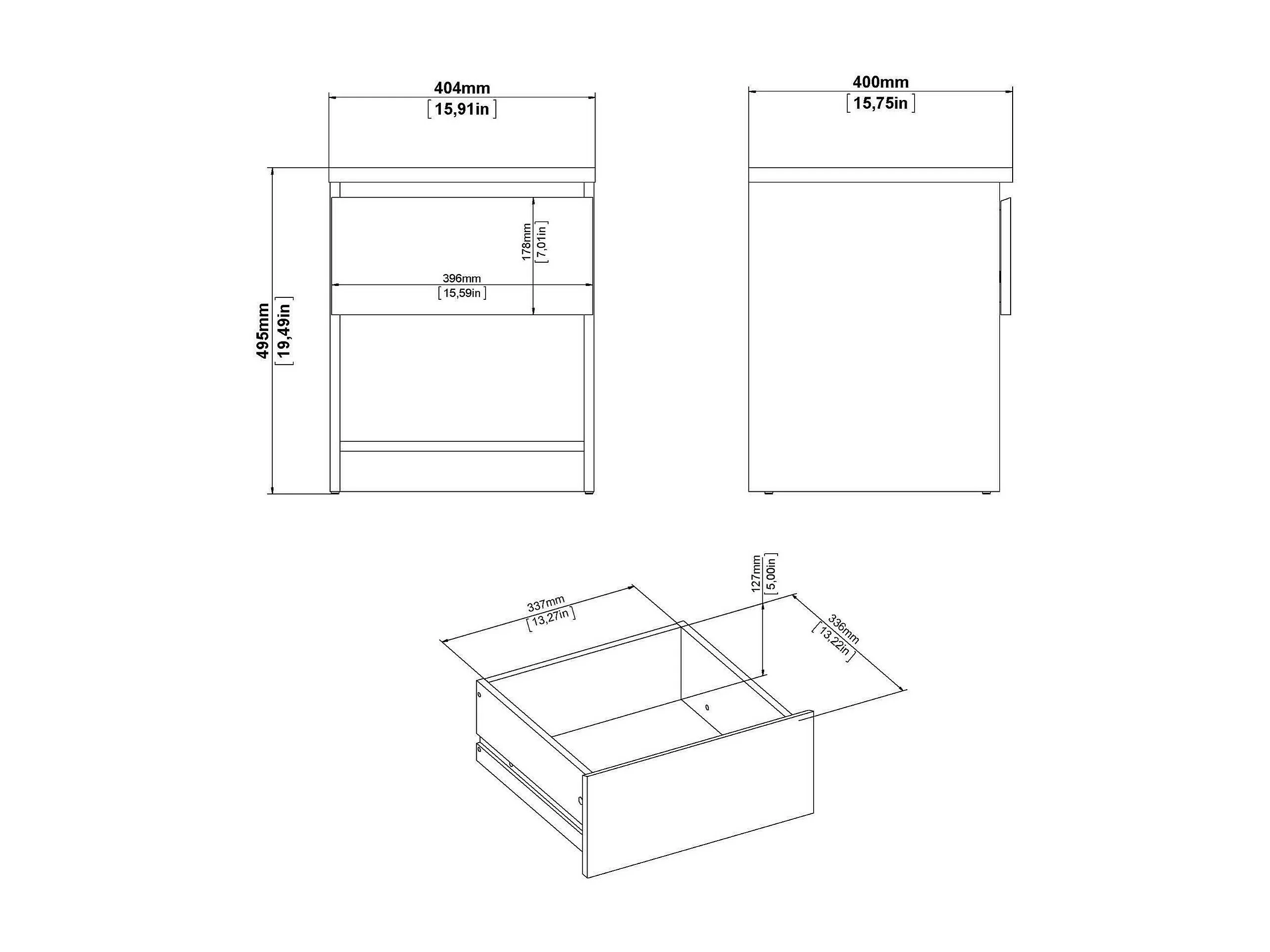 Drugan nachtkastje, Lage ladekast, Nachtkastje, Bedplank, 40x34 h48 cm, Wit