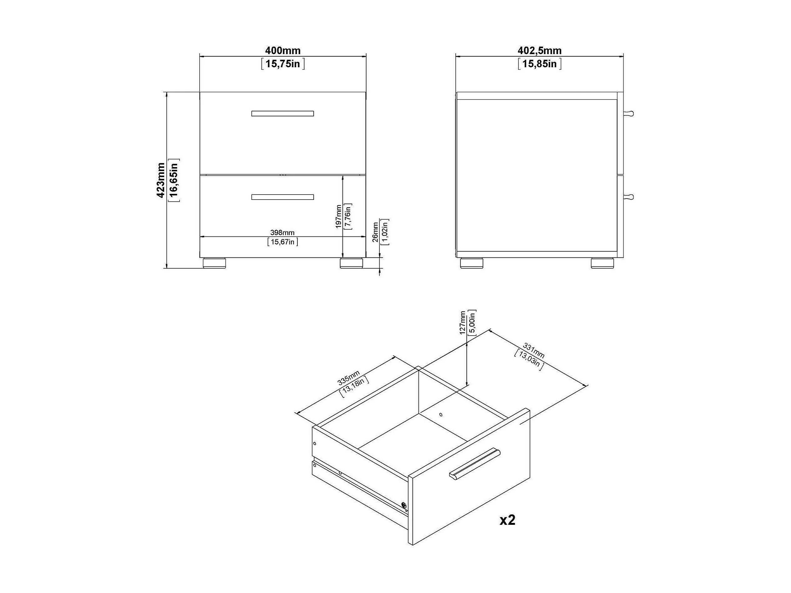 Druotol nachtkastje, Lage ladekast, Nachtkastje, Bedplank, 40x40 h42 cm, Eiken en Wit