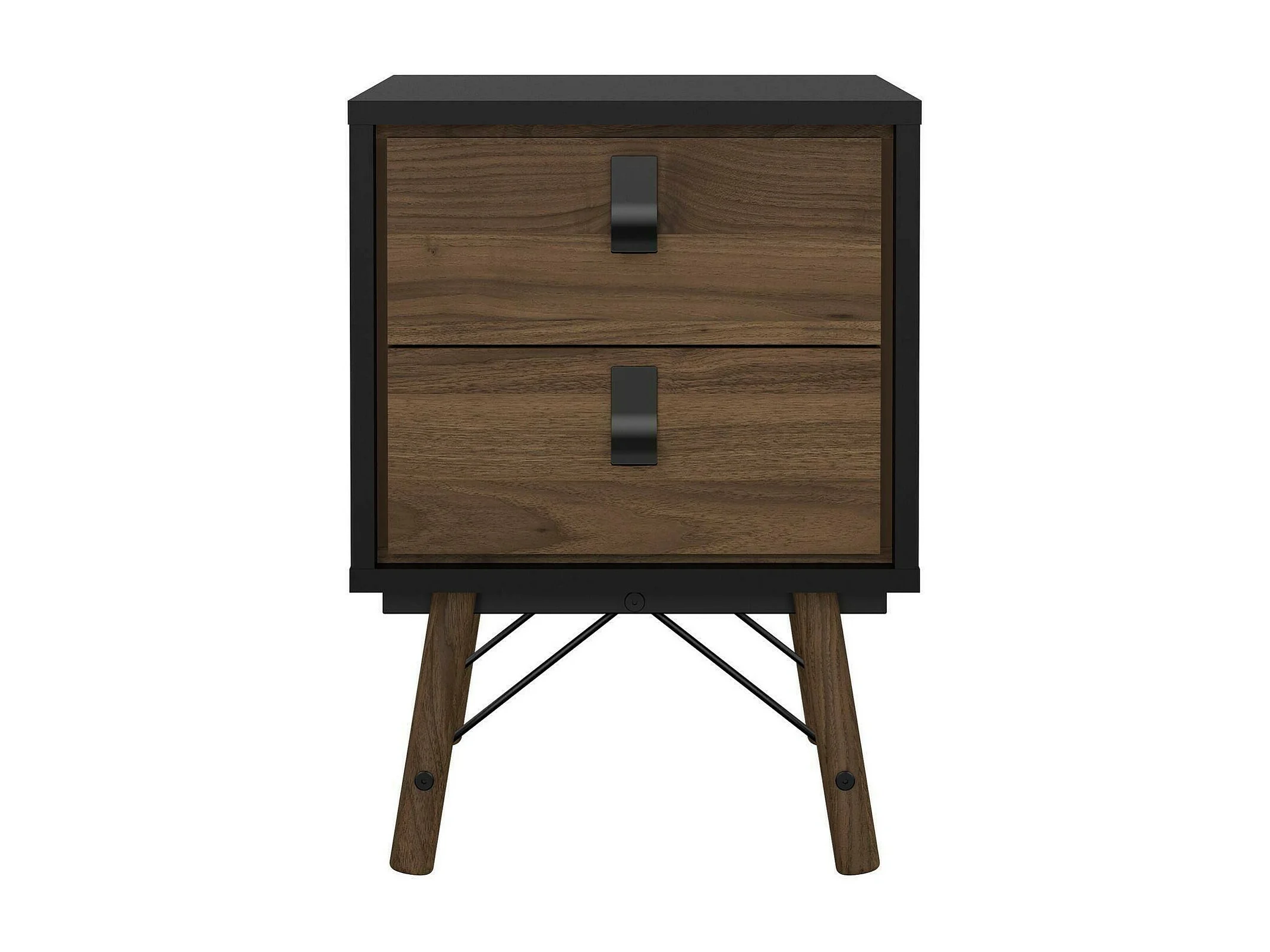 Drovell nachtkastje, Lage ladekast, Nachtkastje, Bedplank, 43x40 h60 cm, Zwart en Walnoot