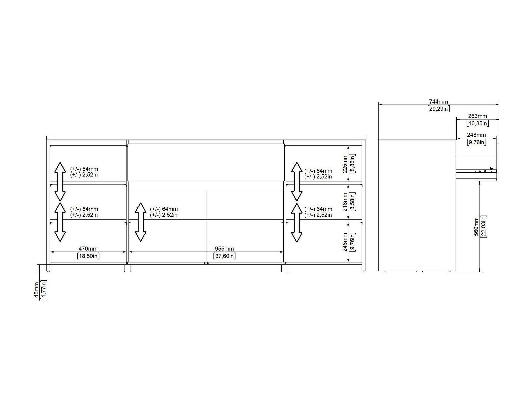 Dsalva dressoir, Woonkamerbuffet, Woonkamerdressoir, Keukenkast, 149x48 h84 cm, Eiken en Wit