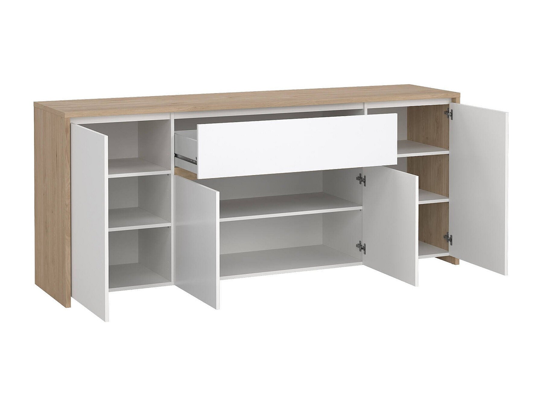 Dsalvion dressoir, Woonkamerbuffet, Woonkamerdressoir, Keukenkast, 196x39 h73 cm, Eiken en Wit