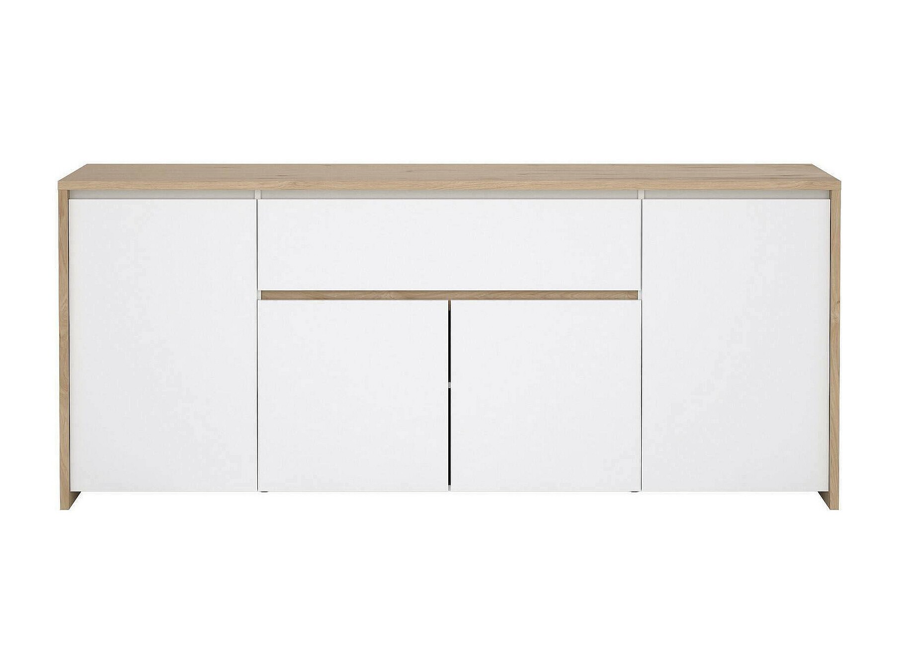 Dsanc dressoir, Woonkamerbuffet, Woonkamerdressoir, Keukenkast, 147x39 h73 cm, Eiken en Wit