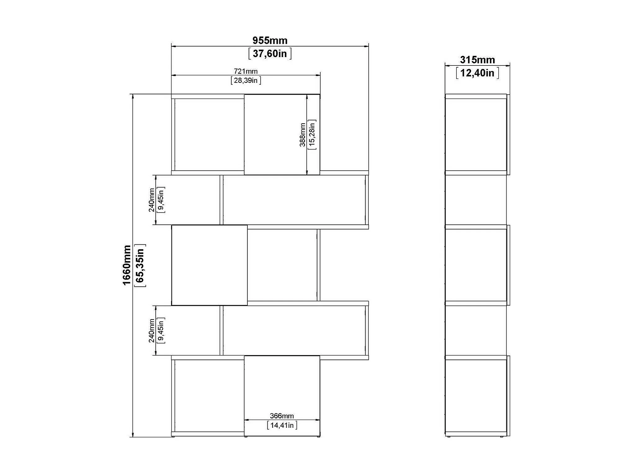 Dsangall boekenkast, Kantoorplank, Boekenkast, Bibliotheek, 96x32 h166 cm, Eiken en Zwart
