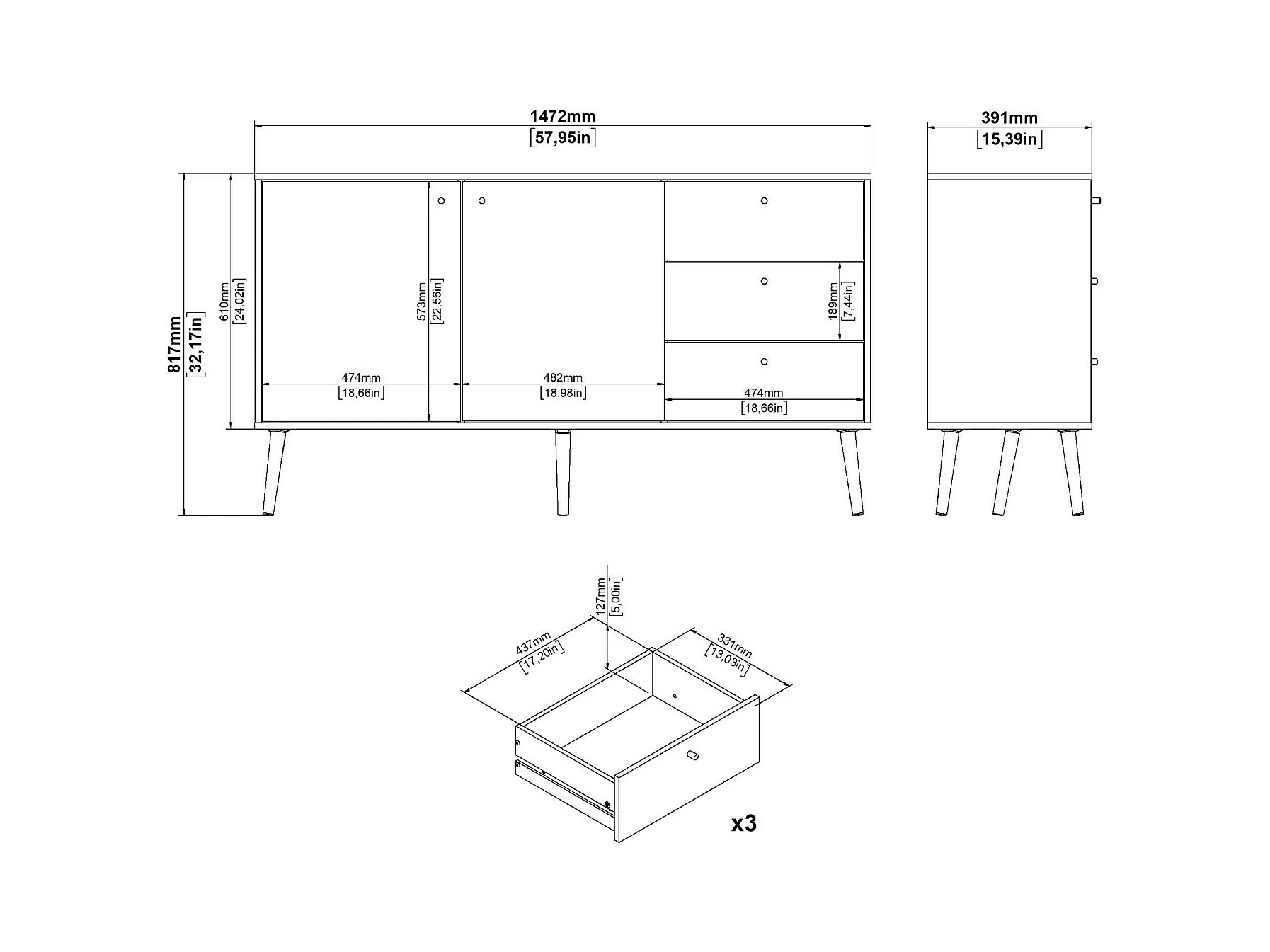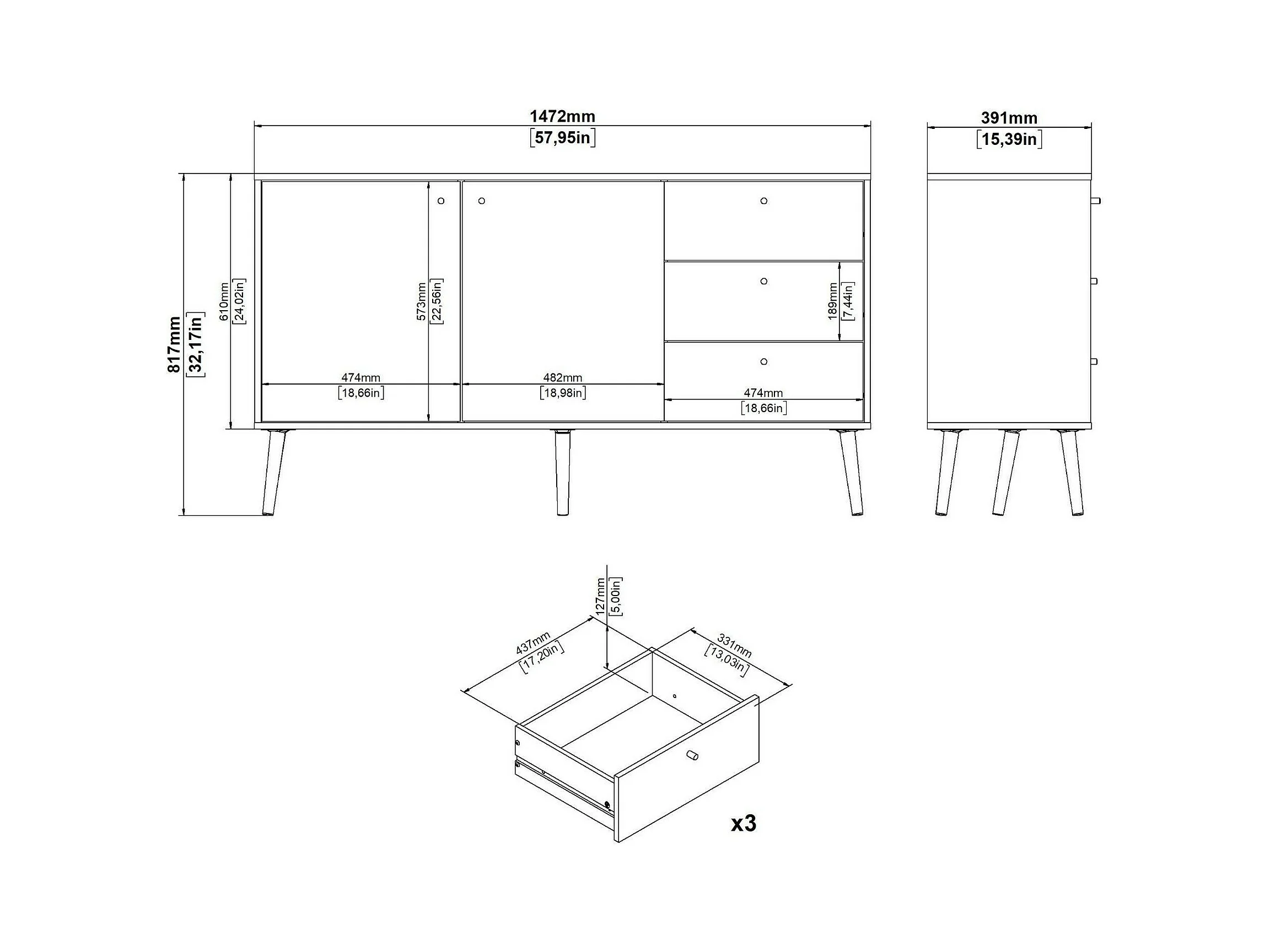 Dsanto dressoir, Woonkamerbuffet, Woonkamerdressoir, Keukenkast, 143x30 h68 cm, Wit