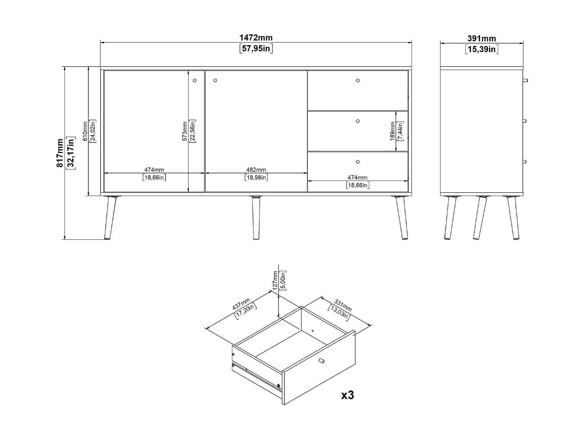 Dsann dressoir, Woonkamerbuffet, Woonkamerdressoir, Keukenkast, 147x39 h82 cm, Wit