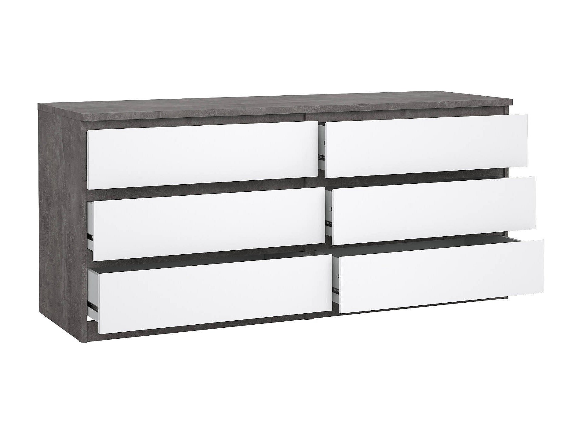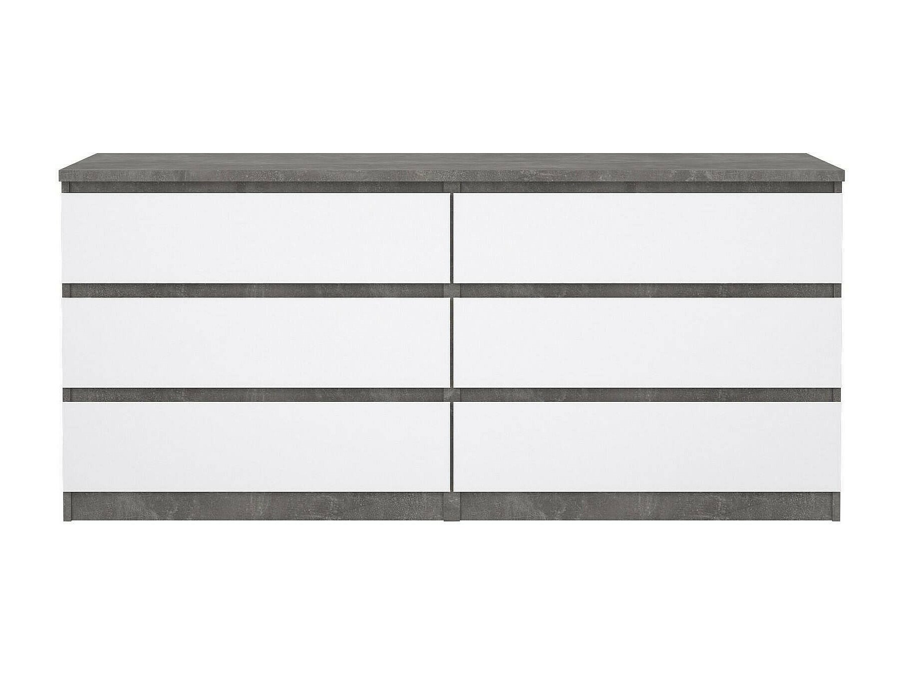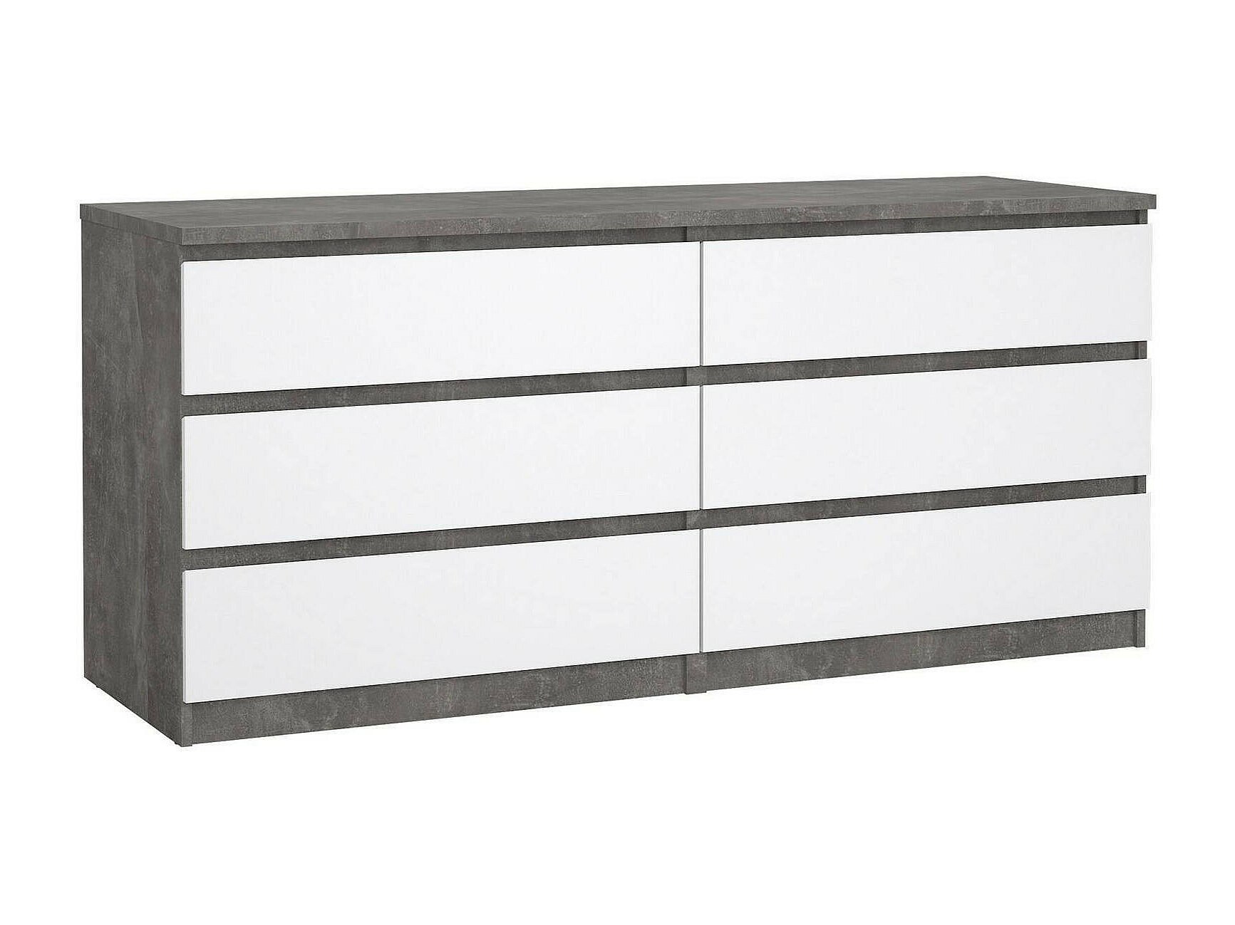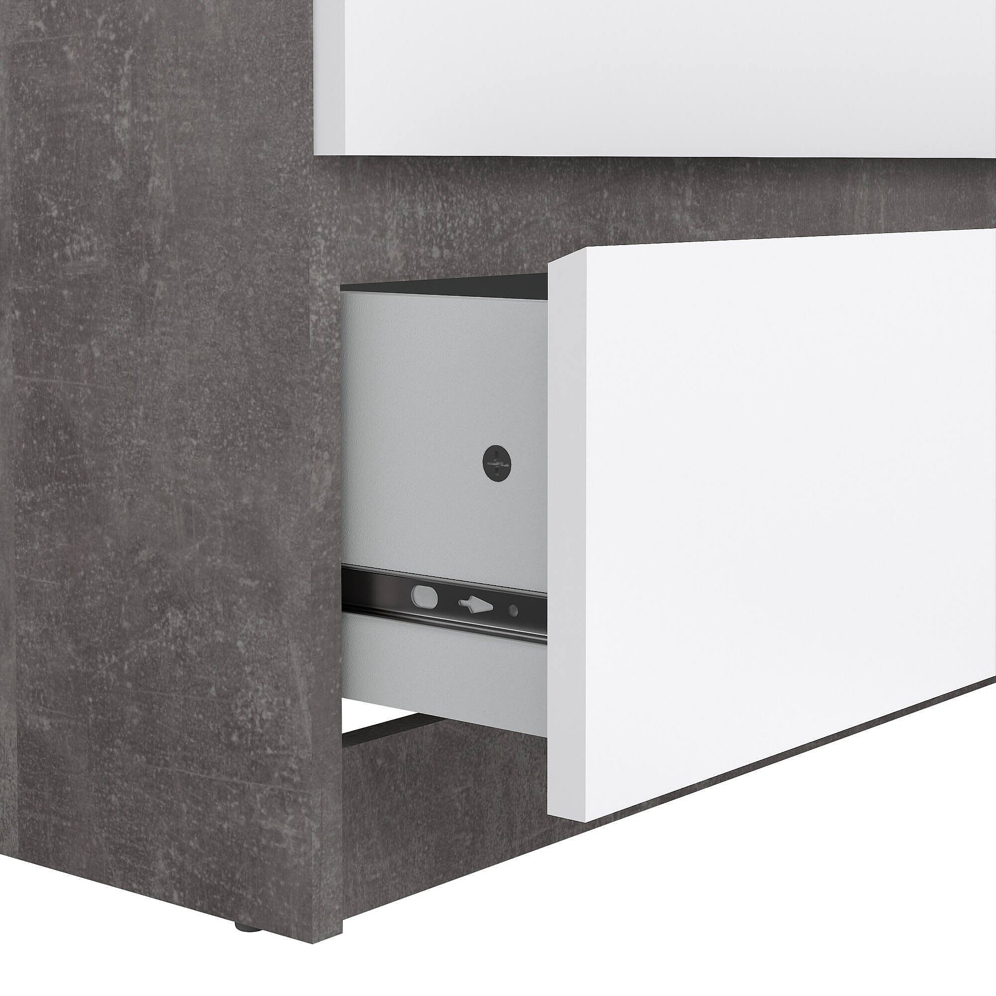 Nada kommode laag en smal 3 lades, betondecor/wit hoogglans.
