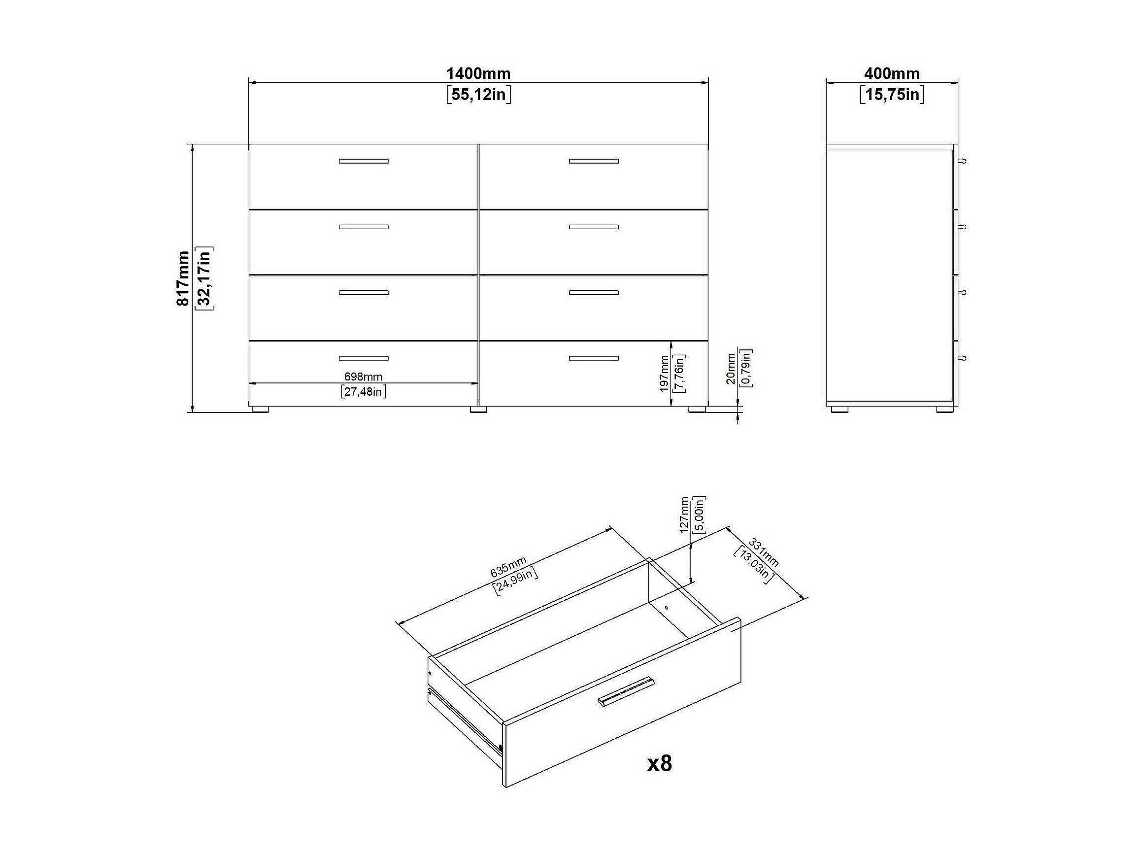 Tweedeurs ladekast - 187 cm - met drie laden en gefreesd front - beige - FALSETTO