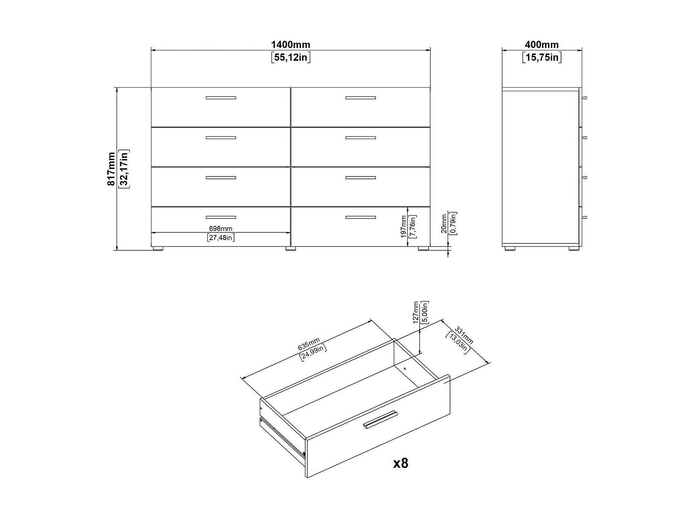 Dsattol dressoir, Woonkamerbuffet, Woonkamerdressoir, Keukenkast, 140x40 h82 cm, Eiken